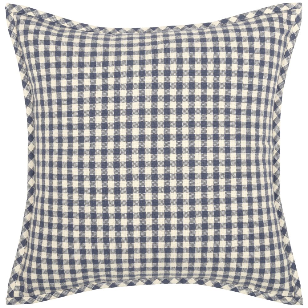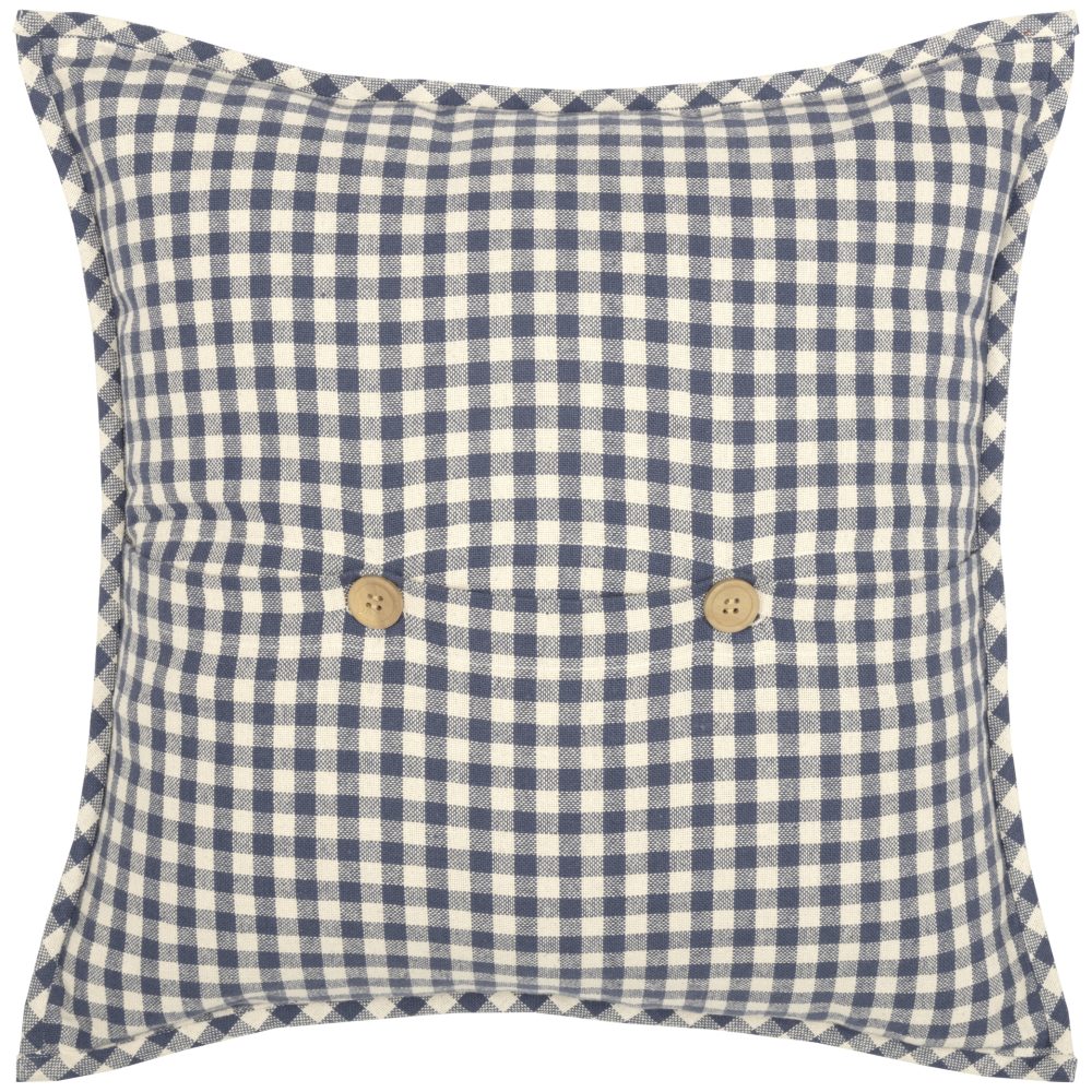 - CHECK PATTERN: This accent pillow features a denim blue and creme check pattern; TEXTURED WEAVE: Woven for added texture; STRAIGHT EDGE: Finished with a .5″ self-binding on the bias; Reverses to same as front; SECURE CLOSURE: Features 2 wooden button closures plus 1 spare hidden button with 3″ overlap to conceal pillow insert; SINGLE FABRIC: Machine stitched