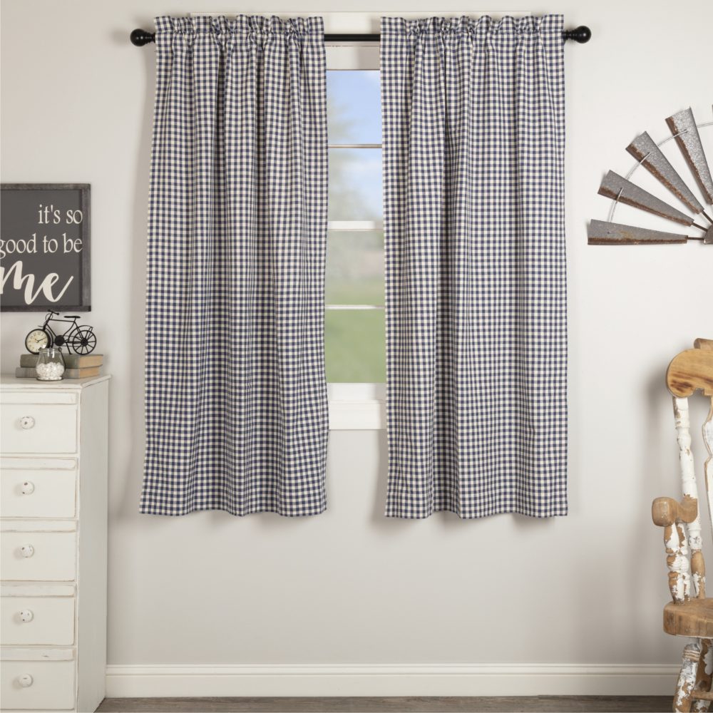 The Doylestown Collection will always hold a special place in our hearts. Not only is it named after the town where we grew up, but we also designed it as a representation of our heritage, specifically our grandparents, Lawrence, and Irma Nyce. The Nyce family has a long history associated with Doylestown, PA. Our grandfather owned Nyce's Feed Mill & Supply Yard. He sold feed for animals, coal, grain, and other farm and home supplies. The Doylestown Check Panels feature a rich blue and cream gingham fabric that is sure to add a fresh, happy look and charming energy to your country cottage or vintage farmhouse. The check fabric will coordinate and complement other pieces in the Doylestown Collection perfectly. From grain-sack and stripes to florals and solids, you can mix and match the tiers with other curtains, bedding, and linens in the collection, creating your own unique style. 100% cotton.