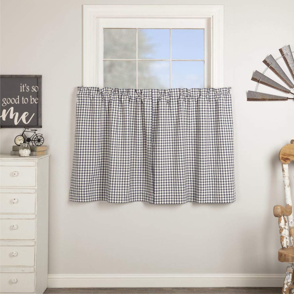 The Doylestown Collection will always hold a special place in our hearts. Not only is it named after the town where we grew up, but we also designed it as a representation of our heritage, specifically our grandparents, Lawrence, and Irma Nyce. The Nyce family has a long history associated with Doylestown, PA. Our grandfather owned Nyce's Feed Mill & Supply Yard. He sold feed for animals, coal, grain, and other farm and home supplies. The Doylestown Check Tiers feature a rich blue and cream gingham fabric that is sure to add a fresh, happy look and charming energy to your country cottage or vintage farmhouse. The check fabric will coordinate and complement other pieces in the Doylestown Collection perfectly. From grain-sack and stripes to florals and solids, you can mix and match the tiers with other curtains, bedding, and linens in the collection, creating your own unique style. 100% cotton.