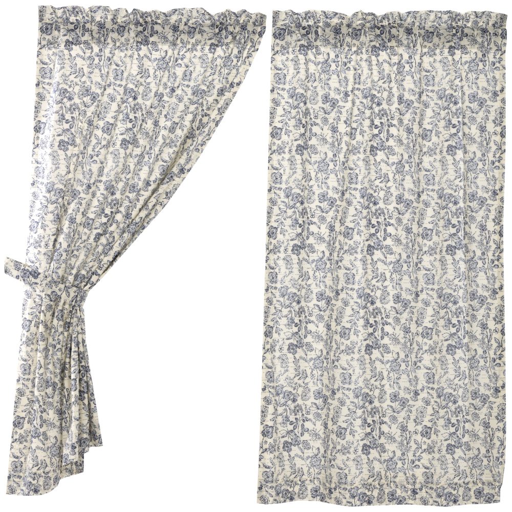 The Doylestown Floral Panels feature rich and dusty blues on a warm, cream background. Updated and fresh, these curtains are made of lightweight cotton, which brings an airy look with energy and movement to your cozy cottage or vintage farmhouse. The delicate flower details coordinate and complement other pieces in the Doylestown Collection. From grain-sack and stripes to gingham checks and solids, you can mix and match the table linens, bedding and curtains easily, creating a unique, coordinated style throughout your home. 100% cotton.