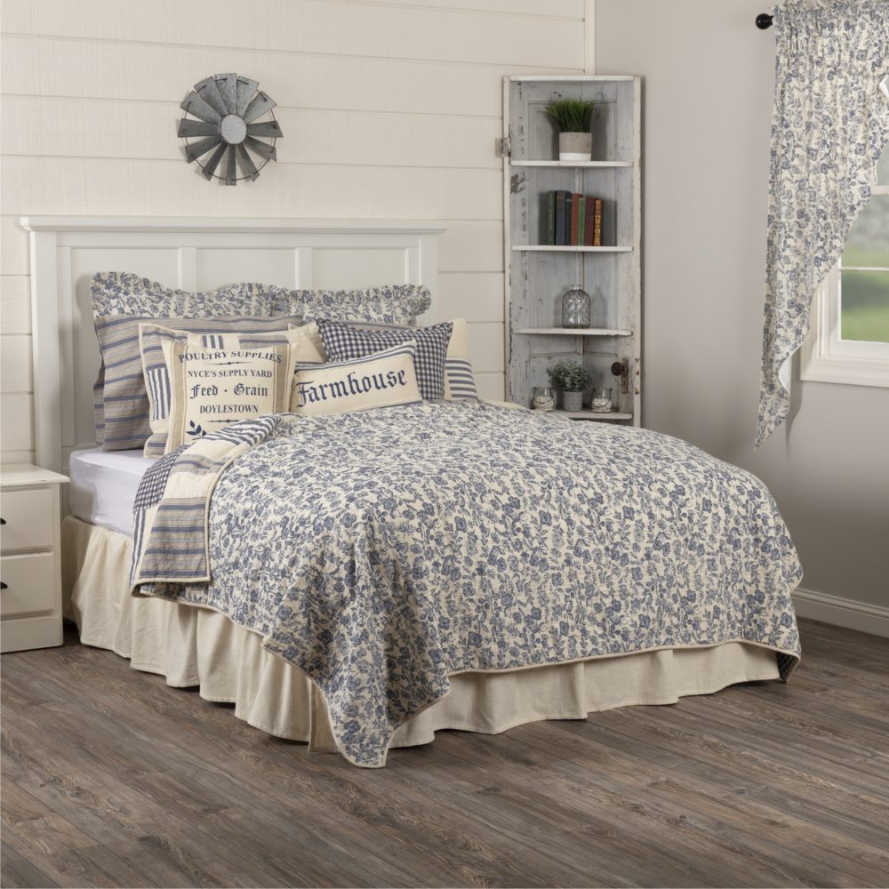Remember those cozy weekends at the farm, wrapped in the softest quilt under the sun? Bring back that touch of nostalgia with our Doylestown King Quilt. Spanning a comfortable 95Lx105W, this rectangular piece of comfort is crafted with love from 100% pure cotton. Can you feel the softness already? Imagine the quilt tumbling gently in the machine, coming out fresh and ready to embrace you. And don't worry, it's iron safe too. Picture this, shades of denim blue blending with creamy hues, subtly offset by khaki - doesn't it remind you of the serene country sky? With its farmhouse style, it's like a piece of the countryside right in your home. Or maybe it evokes memories of a quaint cottage, tucked away somewhere peaceful. The detailed stitch in the ditch quilting, echoed throughout, adds that perfect finishing touch, don't you think? So, are you ready to bring a piece of the past into your present, and make those cozy, comforting memories a part of your everyday?