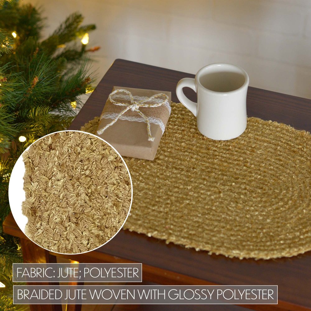 - HOLIDAY DECOR: Bring texture and cozy festive warmth to your table with our Dyani Gold Placemat Set. Concentric braids of gold jute blend fabric with shimmery metallic yarn woven throughout.