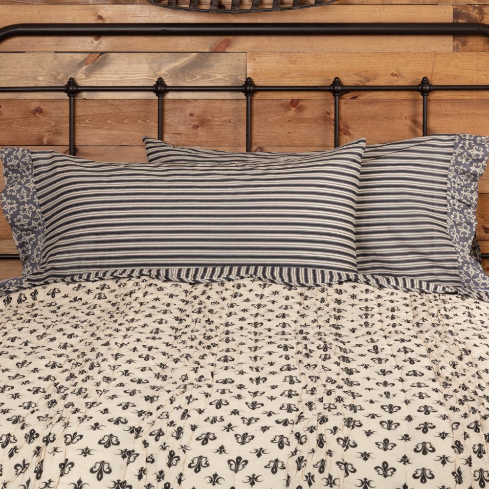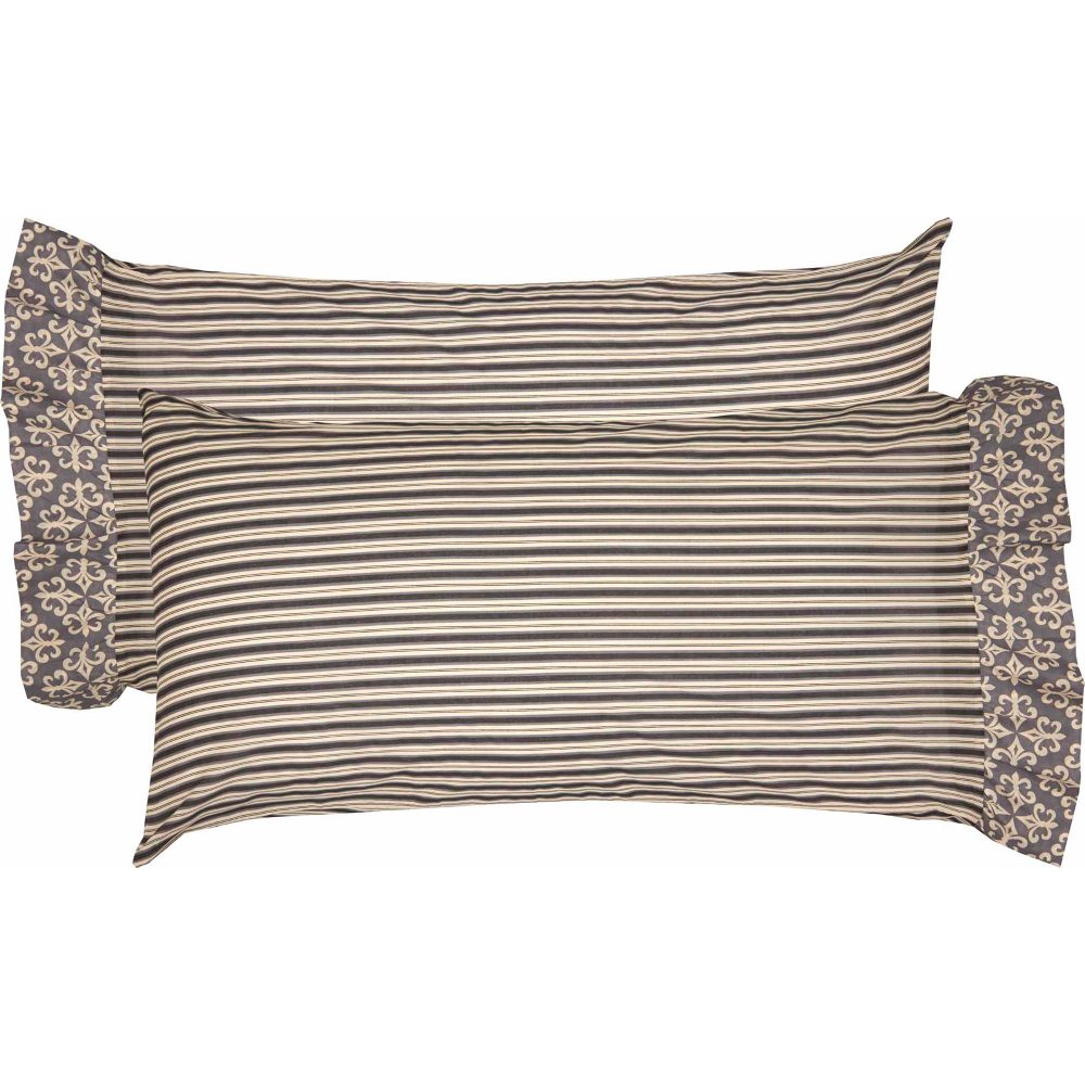 A charming addition to your vintage decor, the Elysee Pillow Case Set is beautifully decorated with a pinstripe body complemented with a creme fleur de lis on grey ruffle trim. The classic style and comfort of this pillow case set will easily freshen up your bedding and coordinates perfectly with the Elysee quilt for a complete look.