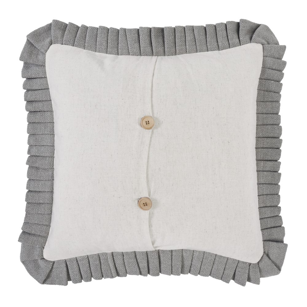 • FARMHOUSE DECOR PILLOW: Includes one 18×18 inch decorative pillow in a textured fabric with detailed embroidery, ruffled edging and button-style closures.