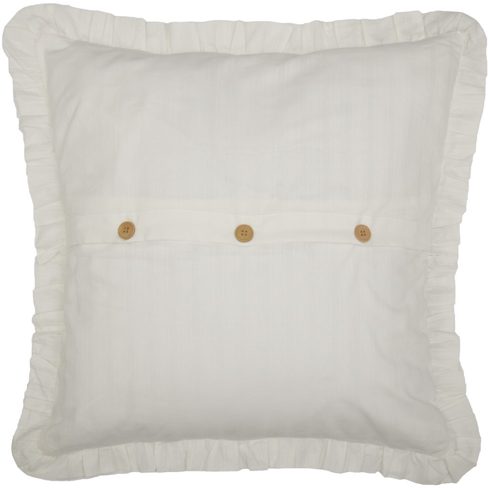 - Reverses to same fabric on back w/ 3 wooden buttons (1) to keep pillow secure. Features 2 ruffle on all sides.