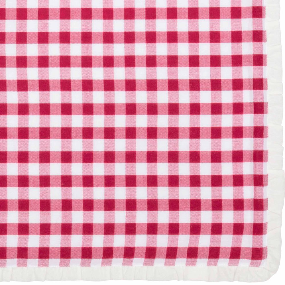 Bring your country picnic indoors this winter with the 13x48 Emmie Red Runner. Our on trend yet classically styled look is flourished with gathered ruffles to add a holiday spin to this farmhouse hit. 100% cotton.