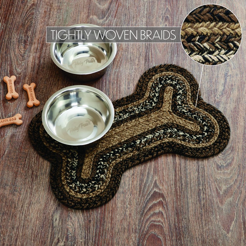 Give your pet a rug that is both stylish and practical. The Espresso Small Bone Rug measures 11.5x17.5 inches and is crafted with 100% recycled polyester material (PET) making it waterproof and durable. The bone-shaped pet rug is suitable for both indoor and outdoor use and is the perfect home for water and food bowls for small breed dogs. Warm, earthy tones make this brown rug a great choice for traditional country or rustic cabin decor.