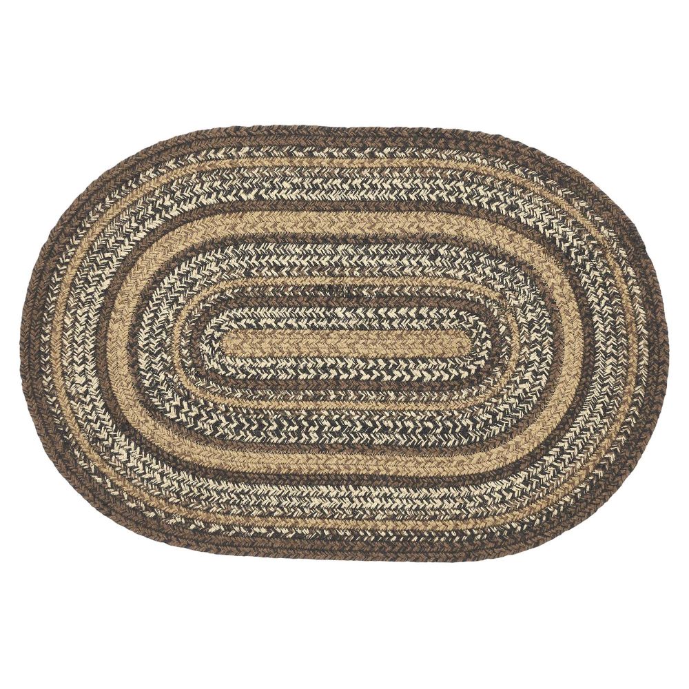 Create a warm, homey feeling with rustic, natural colors in a curl-resistant jute blend that adds style and safety anywhere a small accent rug is needed. The Espresso Jute Rug measures 20x30 inches and features a classic oval shape and tight braids constructed with a durable jute blend. The special blend relaxes faster and stays flat. Features a blend of chestnut brown, country black and dark tan for a dark, rustic look that complements a wide array of country farmhouse decor.