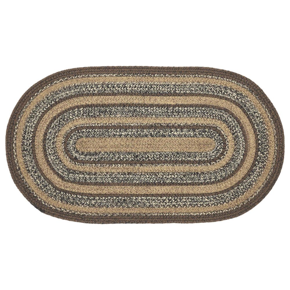 Create a warm, homey feeling with rustic, natural colors in a curl-resistant jute blend that adds style and safety anywhere a mid-size accent rug is needed. The Espresso Jute Rug measures 27x48 inches and features a classic oval shape and tight braids constructed with a durable jute blend. The special blend relaxes faster and stays flat. The included PVC mat makes sure your beautifully braided jute rug stays exactly where it should. Features a blend of chestnut brown, country black and dark tan for a dark, rustic look that complements a wide array of country farmhouse decor.
