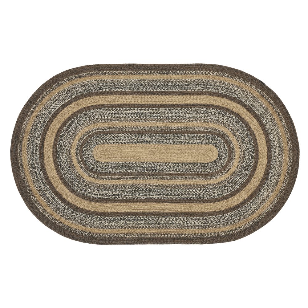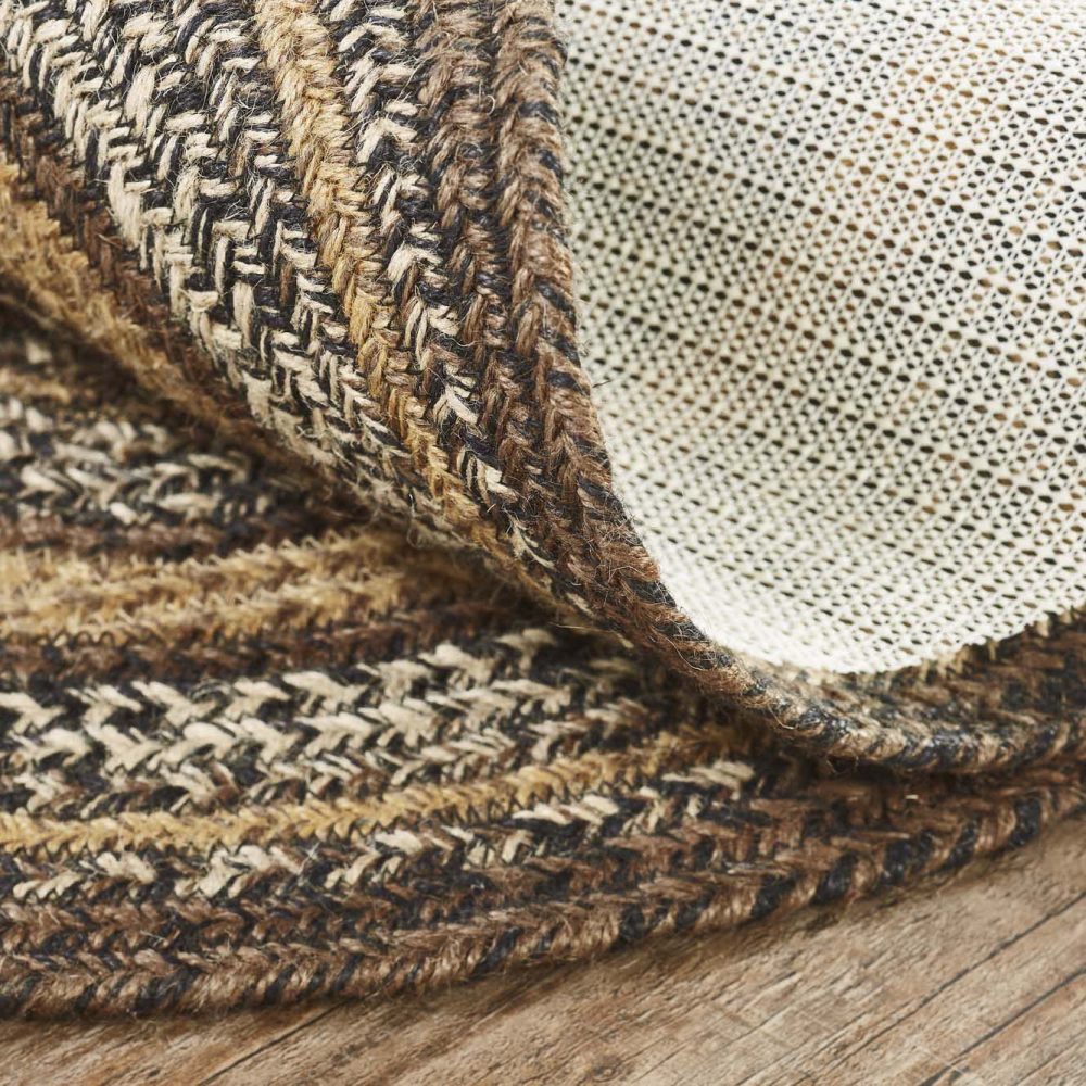 Create a warm, homey feeling with rustic, natural colors in a curl-resistant jute blend that adds style and safety anywhere a versatile area rug is needed. The Espresso Jute Rug measures 60x96 inches and features a classic oval shape and tight braids constructed with a durable jute blend. The special blend relaxes faster and stays flat. The included PVC mat makes sure your beautifully braided jute rug stays exactly where it should. Features a blend of chestnut brown, country black and dark tan for a dark, rustic look that complements a wide array of country farmhouse decor.