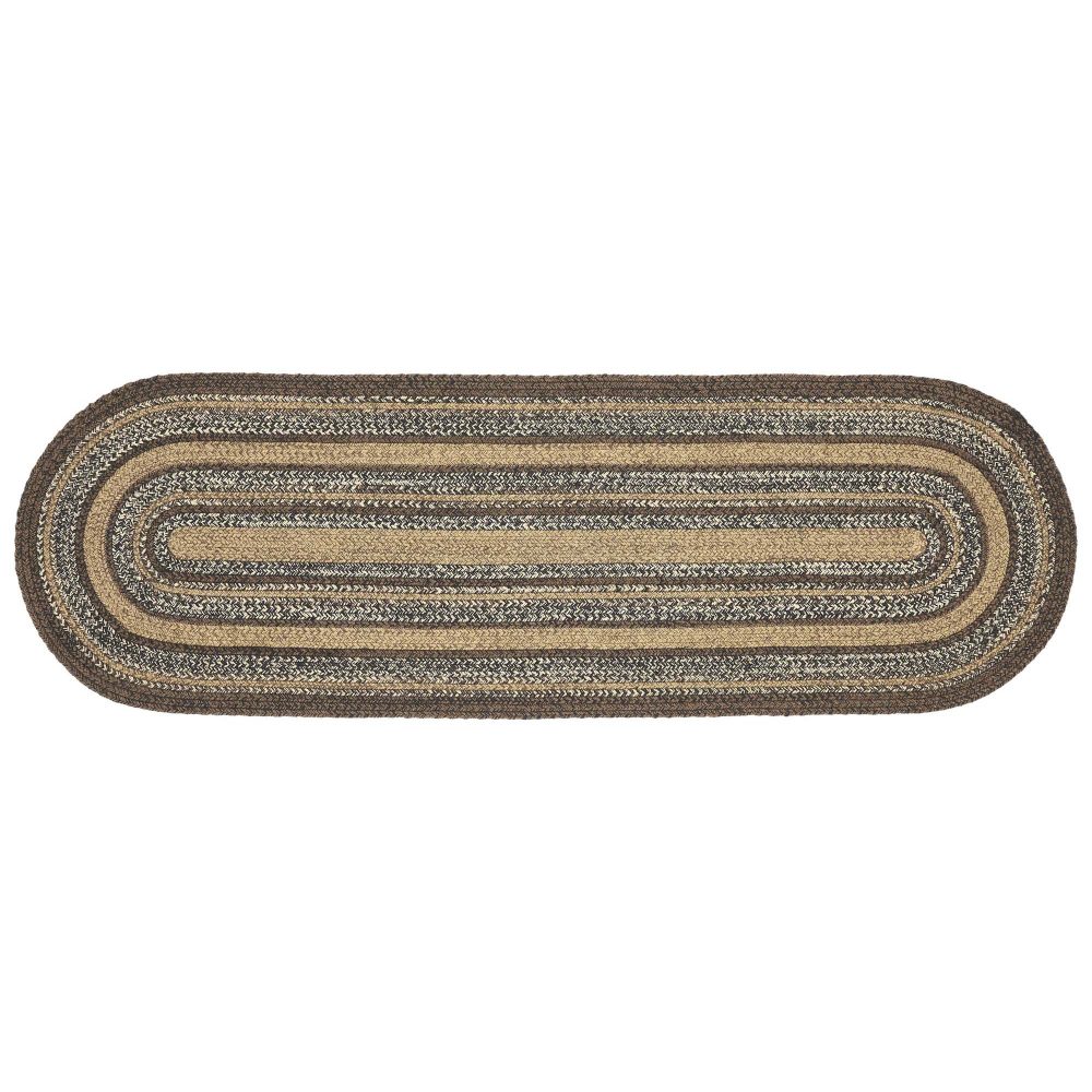 Create a warm, homey feeling with rustic, natural colors in a curl-resistant jute blend that adds style and safety anywhere a long runner style rug is needed. The Espresso Jute Runner measures 22x72 inches and features a classic oval shape and tight braids constructed with a durable jute blend. The special blend relaxes faster and stays flat. The included PVC mat makes sure your beautifully braided jute rug stays exactly where it should. Features a blend chestnut brown, country black and dark tan for a dark, rustic look that complements a wide array of country farmhouse decor.