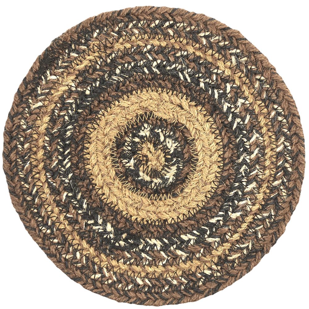 Who says trivets have to be boring? Protect counters and tables from hot pans and dishes with rich, earthy color and classic texture. The Espresso Jute Trivet includes one circular trivet with an 8-inch diameter made from a premium Jute blend. The rich texture of braided jute is given a warm, rustic feel with rich shades of brown woven together for woodsy, country style. Complete your tabletop decor with other pieces from the Espresso Collection by VHC for vintage farmhouse style.