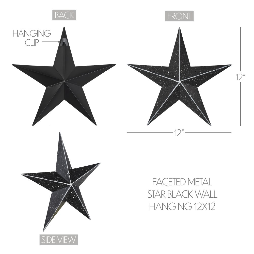 • Metal Wall Hanging: Crafted from durable metal, the VHC Brands Patriotic Faceted Metal Star Black Wall Hanging in a 12×12 size offers a stylish and robust decorative accent for your home.