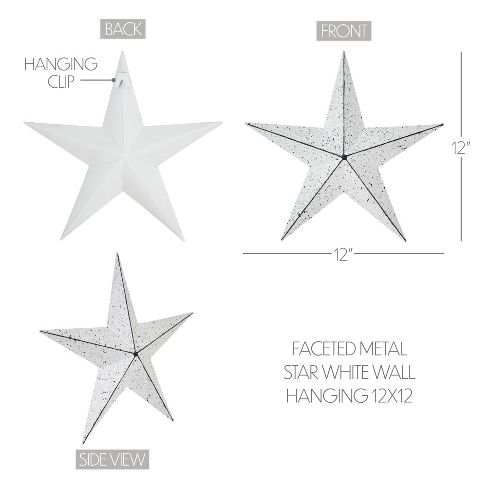 • Metal Wall Hanging: The VHC Brands Patriotic Faceted Metal Star White Wall Hanging, sized at 12×12, is a versatile and visually appealing addition to your home decor, bringing both charm and durability.