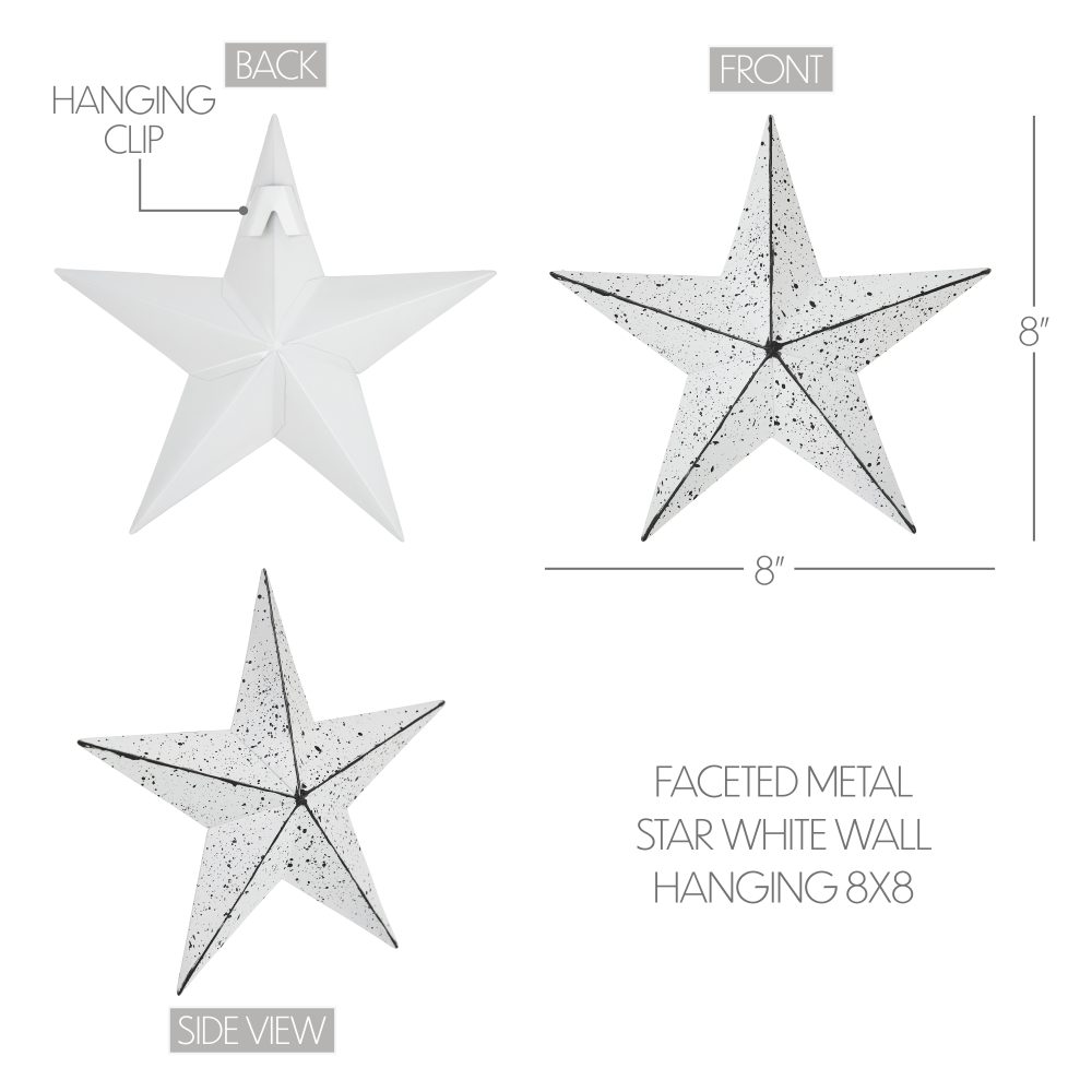 • Metal Wall Hanging: The VHC Brands Patriotic Faceted Metal Star White Wall Hanging, compactly sized at 8×8, is a charming and versatile decorative piece crafted with both style and durability in mind.