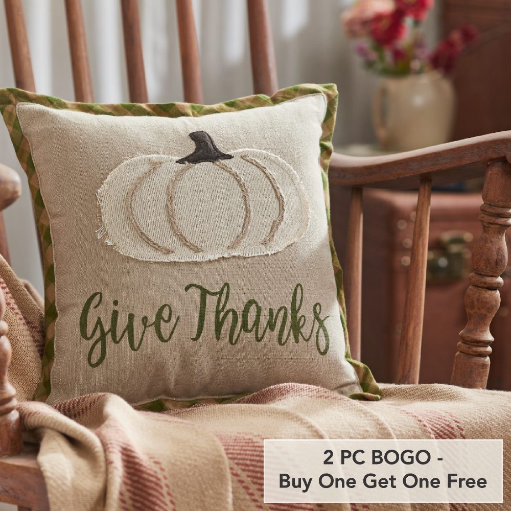 - Sku – 85540 – Fall Thanksgiving Harvest Applique Pumpkin Give Thanks Decorative Throw Pillow 12×12 Autumn Seasonal Home Accent Cushion (2 Packages)