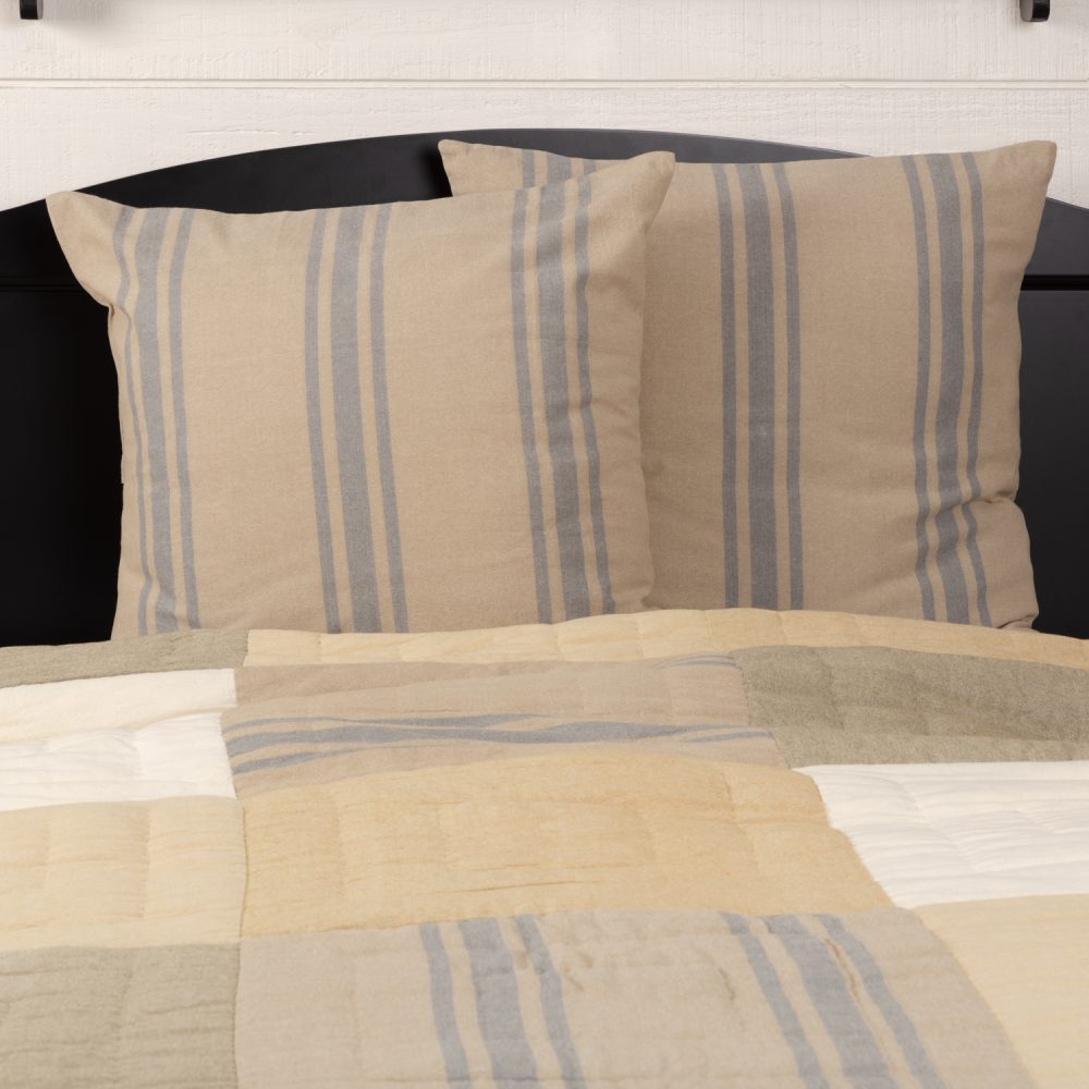Decorate your sleeping space with the Farmer's Market Grain Sack Stripe Fabric Euro Sham Set. Made of textured all-cotton chambray, our euro shams refresh your decor while adding vintage inspiration with their simple grain sack stripes in a grey hue. The tan and grey colors make these 26x26 shams a perfect backdrop for other soothing neutrals or to balance out brighter shades in the home.