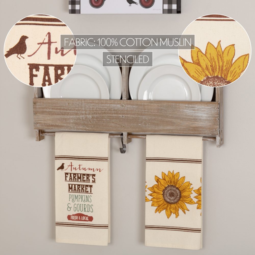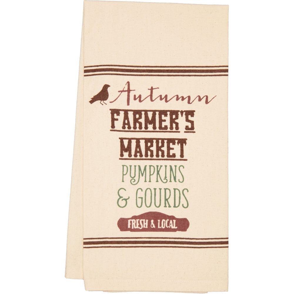 - SEASONAL FARMHOUSE DECOR: Bring fall-inspiration into your home with these tea towels. Mix and match with other pieces in our Farmer’s Market Collection for a complete look this fall season.