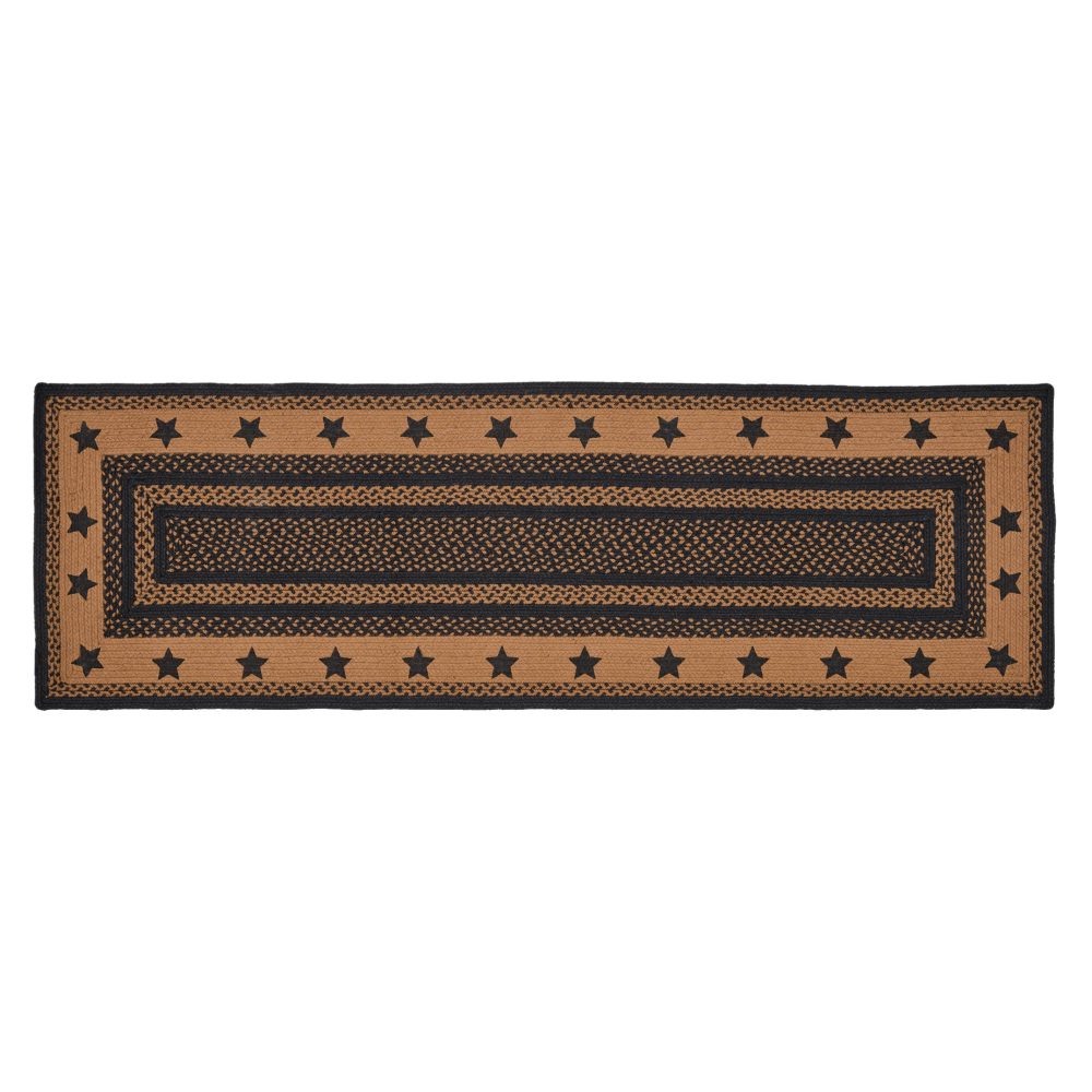 - PRIMITIVE HALLWAY RUNNER: Our Farmhouse Star Jute Rectangular 24 by 78 inch Rug features alternating solid and mixed braids in a classic country color palette with black stenciled stars.