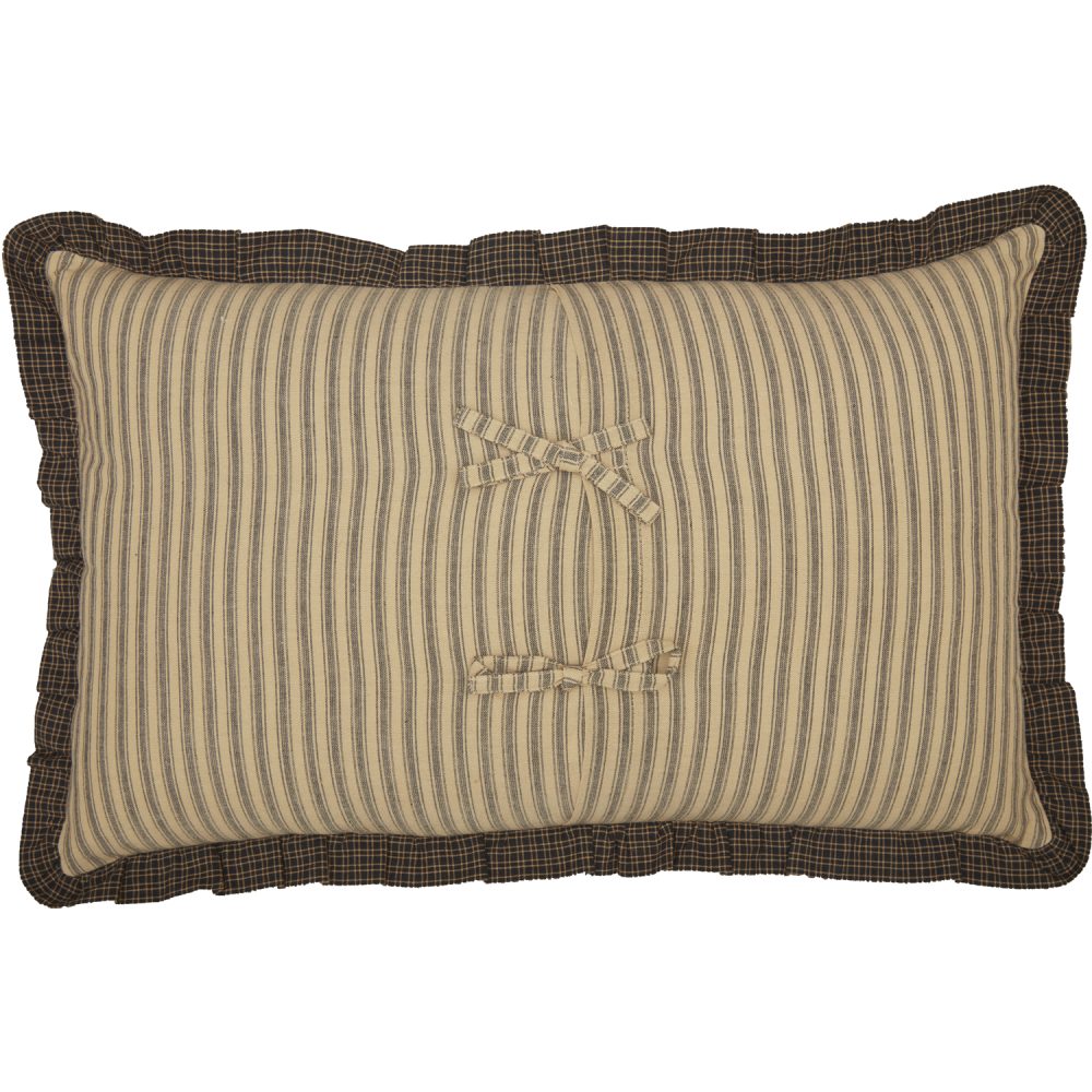 Your home fills with warmth and joy as loved ones gather round. Remember that feeling of belonging and peace with the Farmhouse Star Gathering Place Pillow. The warm, country style accent pillow measures 14x22 inches and features a muted ticking stripe base with a dark microchecked border in shades of creme, black and charcoal. The central design features the phrase, The Gathering Place in black embroidery that is surrounded by primitive patchwork stars for a rustic feel. The rectangular throw pillow reverses to a matching ticking stripe with tie-style closures for easy cleaning. Coordinates with the Farmhouse Star Collection by VHC for vintage farmhouse looks for your casual country decor.