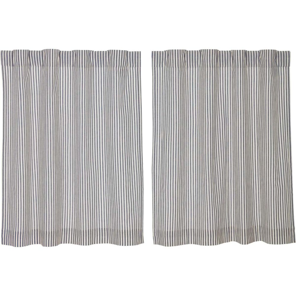 We were inspired by the ticking fabrics we've seen and decided to create our own! The Farmhouse Ticking Blue Collection is available exclusively at Piper Classics and we think it's the perfect addition to your country farmhouse decor. The Lined Tiers feature a woven denim blue ticking stripe on antique white base, lined with white cotton. Tiers provide added privacy or coverage and are the perfect complement to our valances and swags. The ever-popular, classic fabric remains fresh and up-to-date, coordinating effortlessly with other fabric collections for a mix-and-match look.
