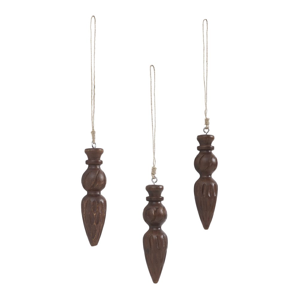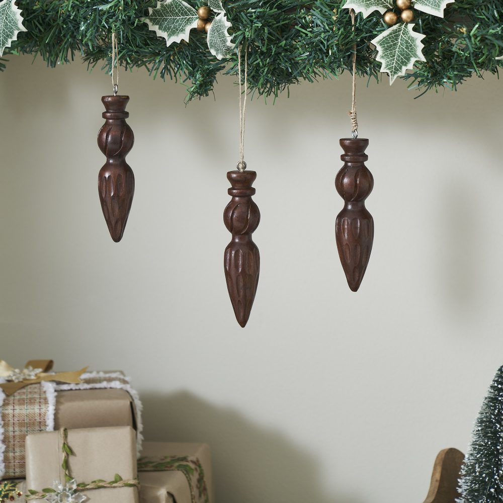 Festive Finial Dark Wooden Ornament Set of 3 – 5.5 inch