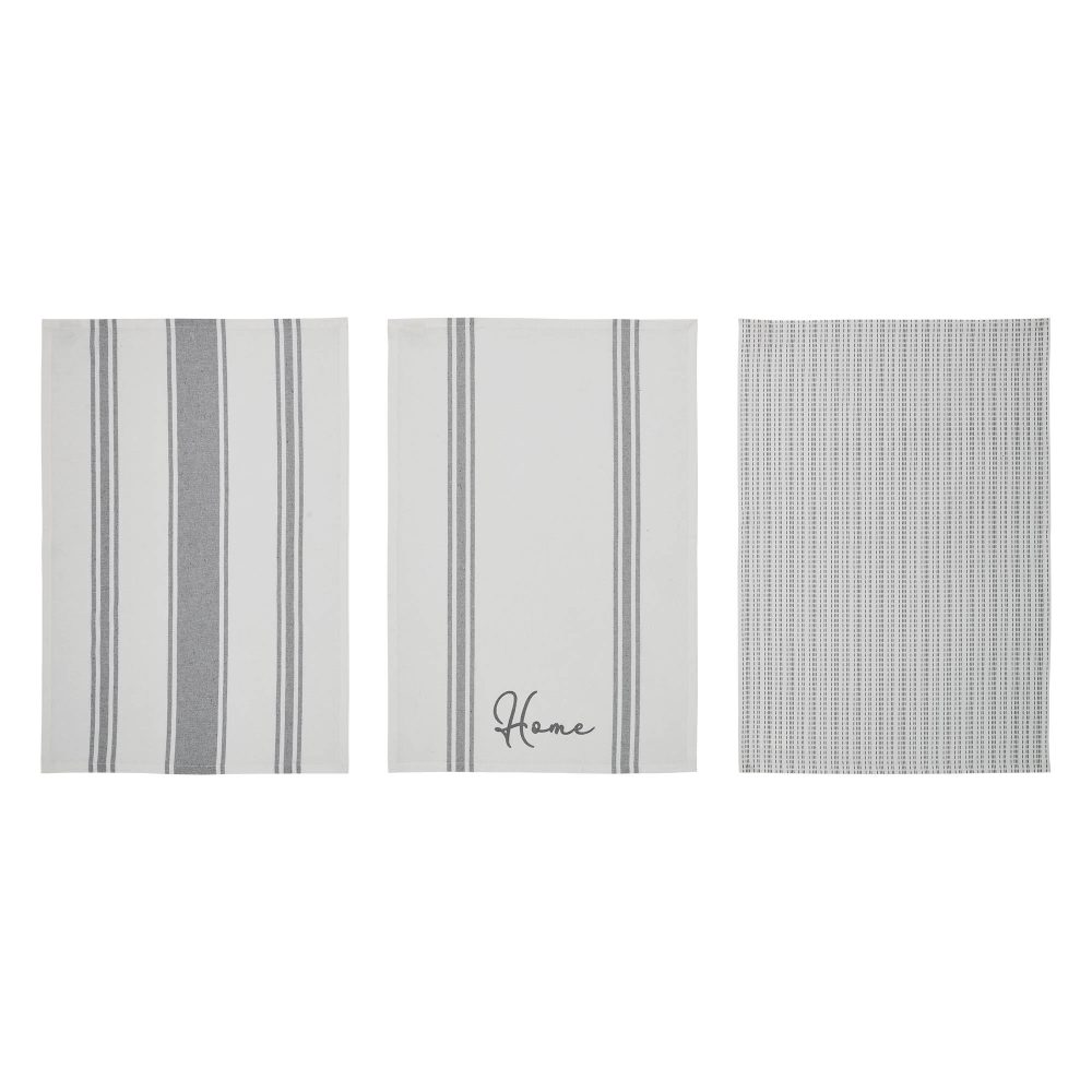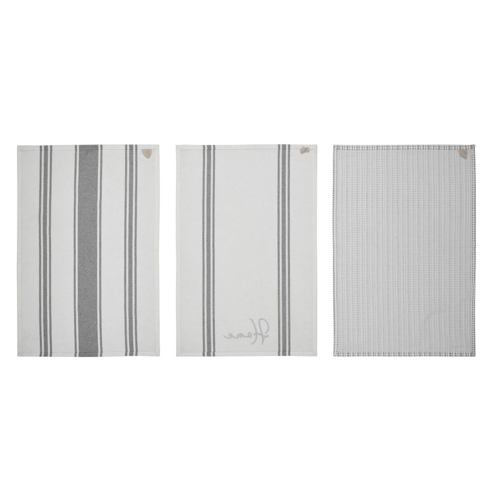 - Elevate your kitchen decor with the Finders Keepers Collection Cotton Kitchen Towel set of 3 in a classic Soft White and Grey. These tea towels add a touch of Farmhouse charm to your space, making them the perfect addition to your Country-style kitchen.