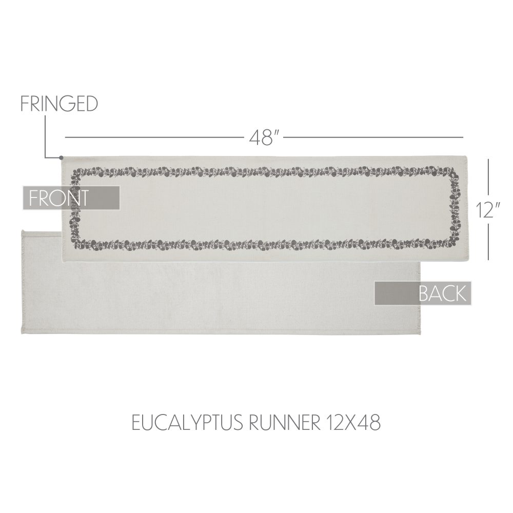 - This runner features a delightful Eucalyptus pattern that adds a touch of natural beauty to your tabletop.