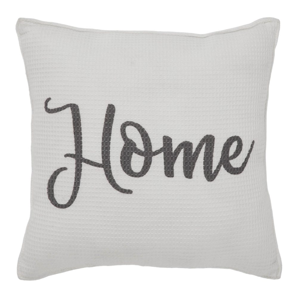 Introducing the VHC Brands Finders Keepers Home Pillow, a perfect addition to your farmhouse and country-inspired interior decor. This square 9x9 pillow, part of the Finders Keepers Collection, features a comforting text design on a soft white cotton cover filled with plush polyester. It serves as the ideal decorative throw pillow for enhancing your couch, bed, or studio, offering both comfort and style with its neutral design, making it a versatile choice for a variety of interior aesthetics, from midcentury modern to classic country charm. Elevate your home's ambiance with this versatile 9x9 square pillow, whether used as an accent piece or for lumbar support. The VHC Brands Finders Keepers Home Pillow conveys a sense of warmth and hospitality, creating an inviting and cozy atmosphere in any room. With its neutral color and comforting text, it seamlessly complements various interior decor styles, making it the perfect choice for adding character to your living spaces. Upgrade your space with this delightful pillow, and enjoy the ideal combination of comfort and style, reflecting the heartfelt message of "home" in your farmhouse and country-inspired decor.