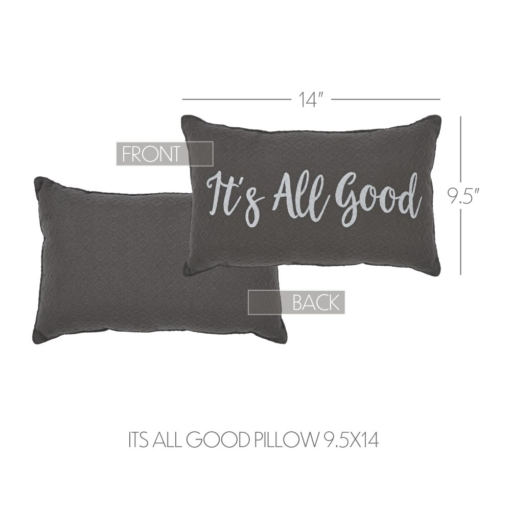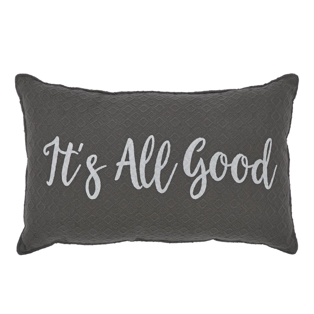 Introducing the VHC Brands Finders Keepers It's All Good Pillow, a charming addition to your farmhouse and country decor. Measuring 9.5x14 inches, this cotton pillow with a plush polyester fill is the perfect choice for your couch, bed, or studio. Adorned with a stylish text design in steel grey from the Finders Keepers Collection, this decorative throw pillow adds a touch of rustic charm to your space, reminding you that "It's All Good." Enhance your farmhouse and midcentury modern decor with the Finders Keepers It's All Good Pillow. Its 9.5x14 rectangular shape is versatile, whether you need lumbar support or a stylish accent for your couch. The intricate text design in steel grey effortlessly blends with any neutral color scheme, creating an inviting and cozy atmosphere in your home. Elevate your decor with this decorative pillow, a statement piece that complements your style, whether it's country, midcentury modern, or simply neutral. Elevate your home's ambiance with the VHC Brands Finders Keepers It's All Good Pillow, a fusion of farmhouse charm and modern comfort. Crafted from high-quality cotton and filled with soft polyester, this 9.5x14 rectangular pillow is the perfect choice to accentuate your decor. The inspiring text and stylish design make this pillow a versatile addition, creating a warm and welcoming atmosphere. Add a touch of rustic charm to your living space with this Finders Keepers It's All Good Pillow.