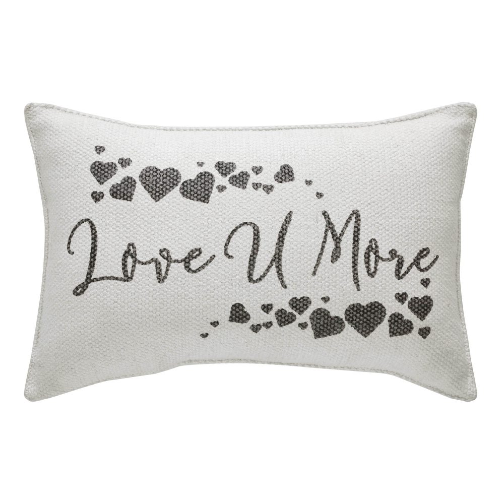 Introducing the VHC Brands Finders Keepers Love U More Pillow, a heartwarming addition to your farmhouse and country decor. Measuring 9.5x14 inches, this cotton pillow filled with soft polyester is the perfect choice for your couch, bed, or studio. Adorned with an endearing "Love U More" text design in grey on soft white cotton from the Finders Keepers Collection, this decorative throw pillow adds a touch of rustic charm to your space, reminding you of the boundless love you share. Enhance your farmhouse and midcentury modern decor with the Finders Keepers Love U More Pillow. Its 9.5x14 rectangular shape is versatile, whether you need lumbar support or a stylish accent for your couch. The textured "Love U More" text effortlessly blends with any neutral color scheme, creating an atmosphere of warmth and affection in your home. Elevate your decor with this decorative pillow, a statement piece that complements your style, whether it's country, midcentury modern, or simply neutral. Elevate your home's ambiance with the VHC Brands Finders Keepers Love U More Pillow, a fusion of farmhouse charm and modern comfort. Crafted from high-quality cotton and filled with soft polyester, this 9.5x14 rectangular pillow is the perfect choice to accentuate your decor. The heartfelt "Love U More" text and soft white color make this pillow a versatile addition, creating an inviting and cozy atmosphere. Add a touch of rustic charm and love to your living space with this Finders Keepers Love U More Pillow.