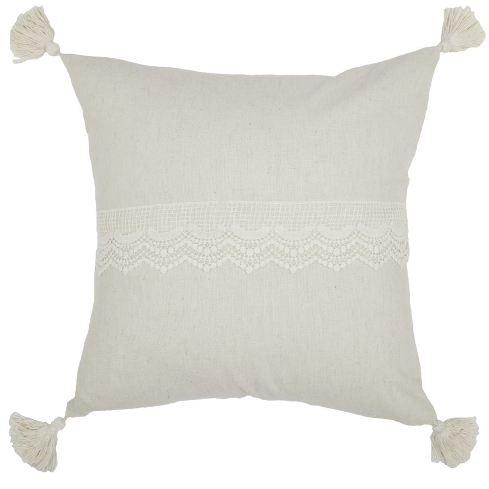 When you want to add a touch of farmhouse finesse to your home this season, you'll want to bring in the Flax and Lace Collection! The design adds a level of sophisticated simplicity and elemental elegance, with beautiful details and soft, cozy neutrals just right for today's interiors. The pillow cover is a warm cream, cotton-flax blend, accented with delicate, airy lace in a slightly paler tone, sewn across the center of the cover. Four flirty 3 cream tassels (same color as lace) are sewn to the corners, and both the lace and tassels lend a tonal contrast with the warm cream fabric. The pillow cover, with its sweet and pretty details, adds a lovely touch to your farmhouse with rich textures and fanciful, feminine details. Pairs beautifully with our Lydia, Brooke, and Olivia Collections and can be layered with many other collections to create a curated, distinct look throughout your home.