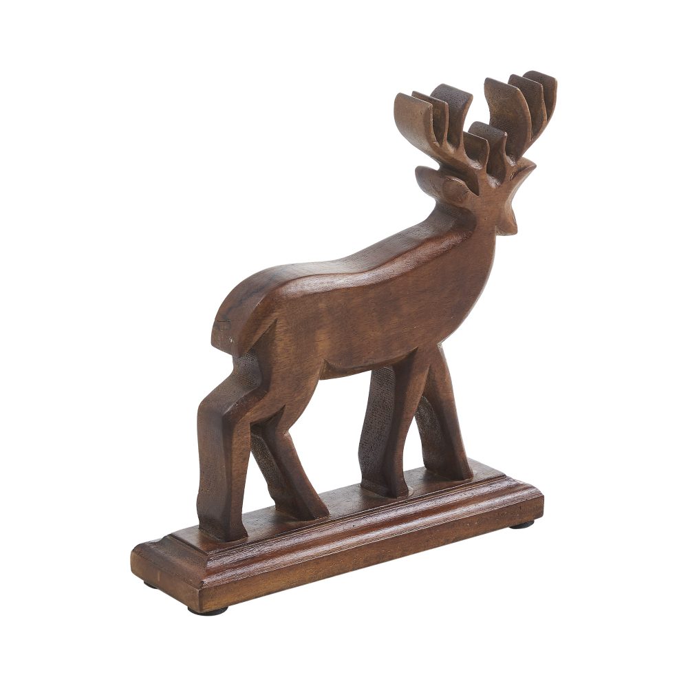 • Dark Brown Finish: Crafted from natural wood with a rich dark brown finish, this deer offers a traditional and rustic look that complements a variety of winter and Christmas themes.