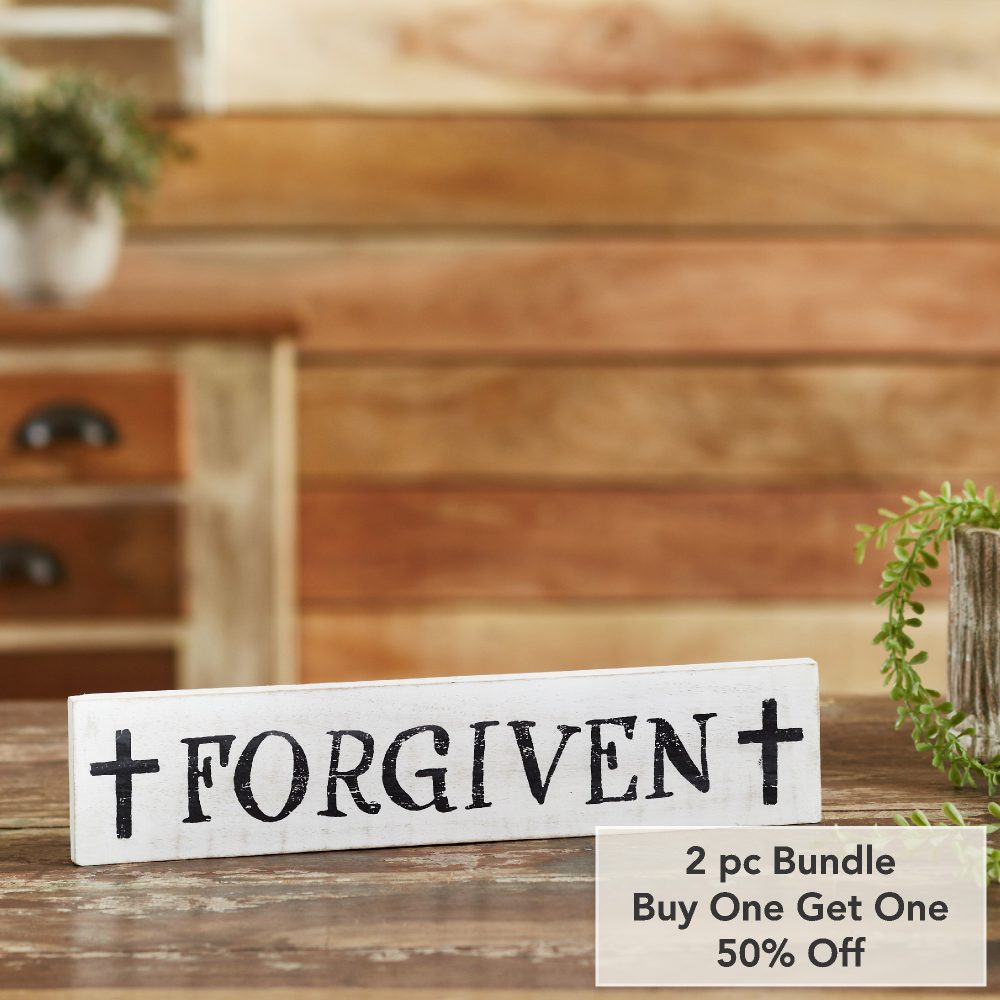 - Sku – 84986 – Forgiven with Crosses Wooden Sign 3×14 (2 Packages)