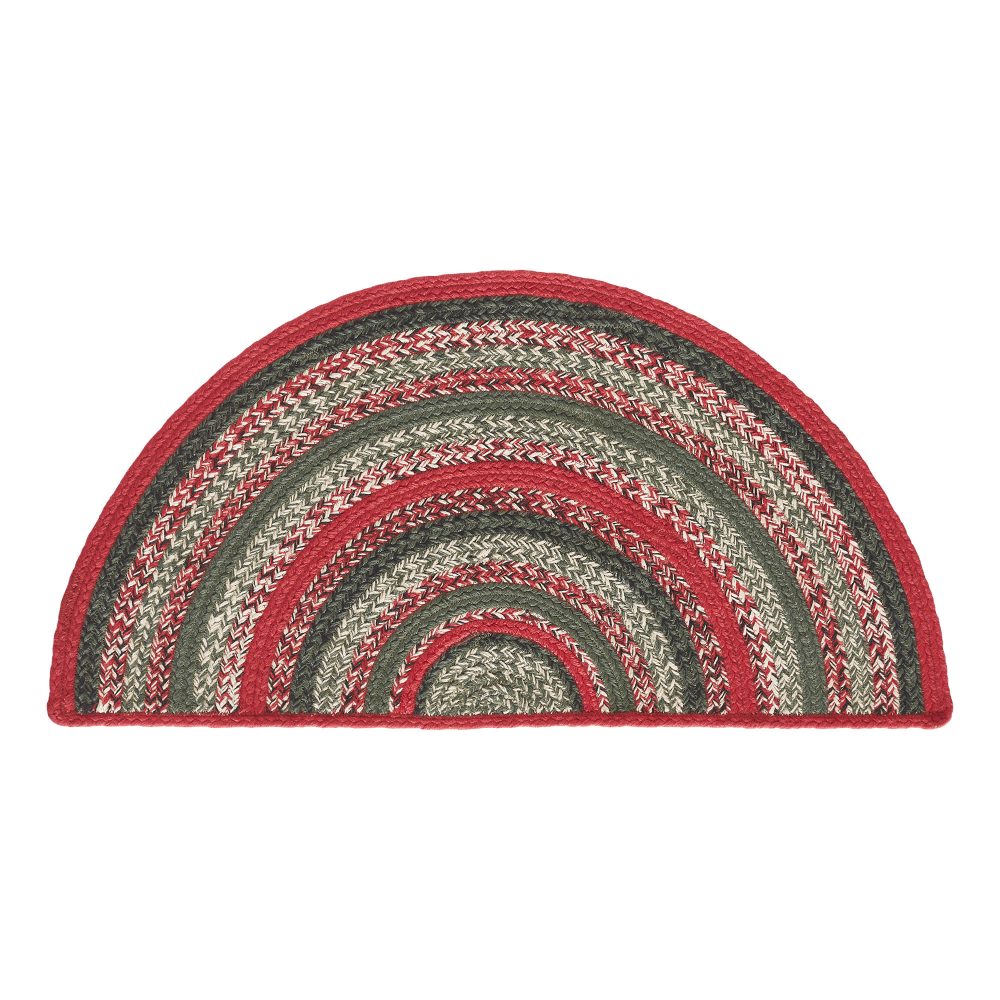 Make your entryways warm and welcoming this Christmas with deep shades of green and bright red. The Forrester Braided Half Circle PET Rug measures 16.5x33 inches and features rows of braided recycled PET yarn in a loose weave. The water-resistant material combines the traditional look of a braided rug with easy care. Coordinates with matching tabletop decor from the Forrester Collection by VHC for a complete rustic country look.