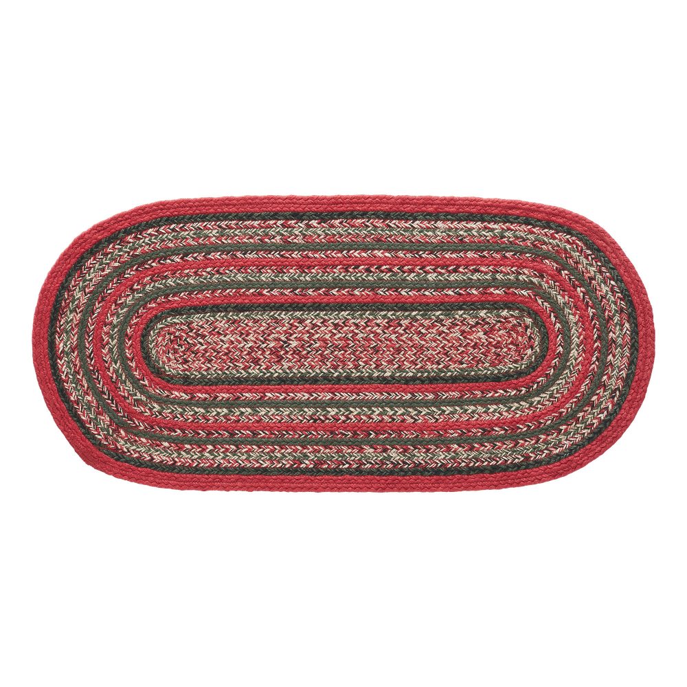 Make your home warm and welcoming this Christmas with deep shades of green and bright red. The Forrester Braided Oval PET Rug measures 17 x 36 inches and features rows of braided recycled PET yarn in a loose weave. The water-resistant material combines the traditional look of a braided rug with easy care. Coordinates with matching tabletop decor from the Forrester Collection by VHC for a complete rustic country look.