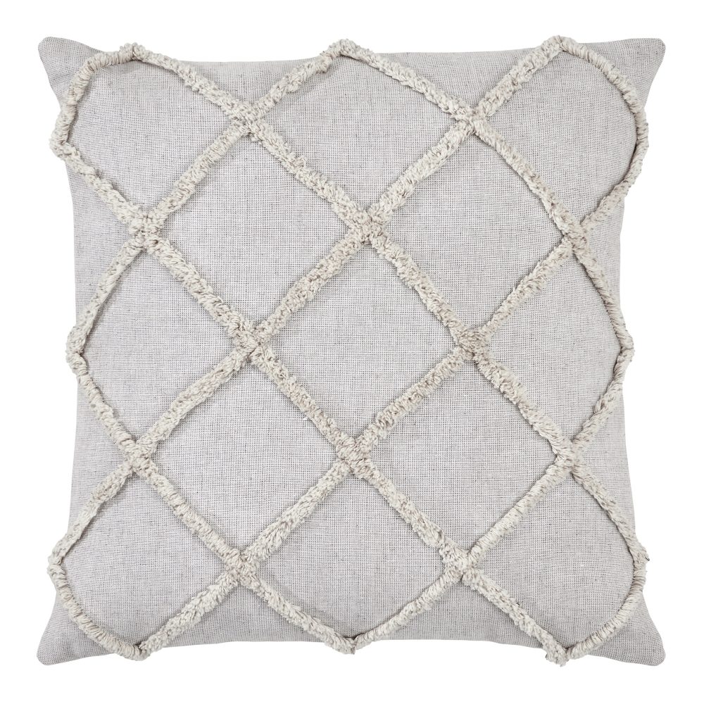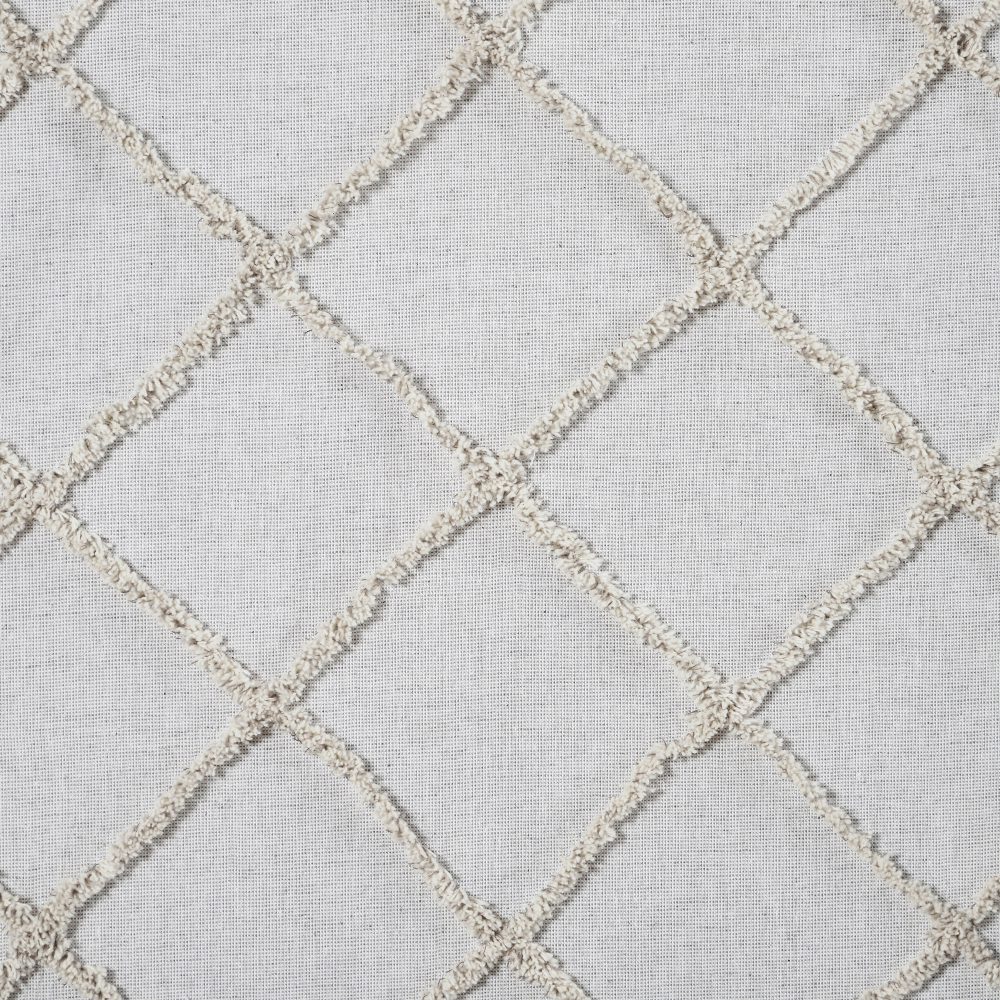 Classy and comforting, this richly textured decorative pillowcase includes a classic geometric diamond pattern and a light, neutral color scheme to match your cottage or farmhouse decor perfectly. The Frayed Lattice Oatmeal Pillow Cover measures 20x20 and features a button-style closure on the reverse side. Made of 100 percent cotton in a mix of oatmeal tan and soft white with tufted detailing. For a classic country look with the quality you've come to expect from over 25 years of happy customers, pair with other textured home staples and accessories from the Frayed Lattice Collection by VHC.