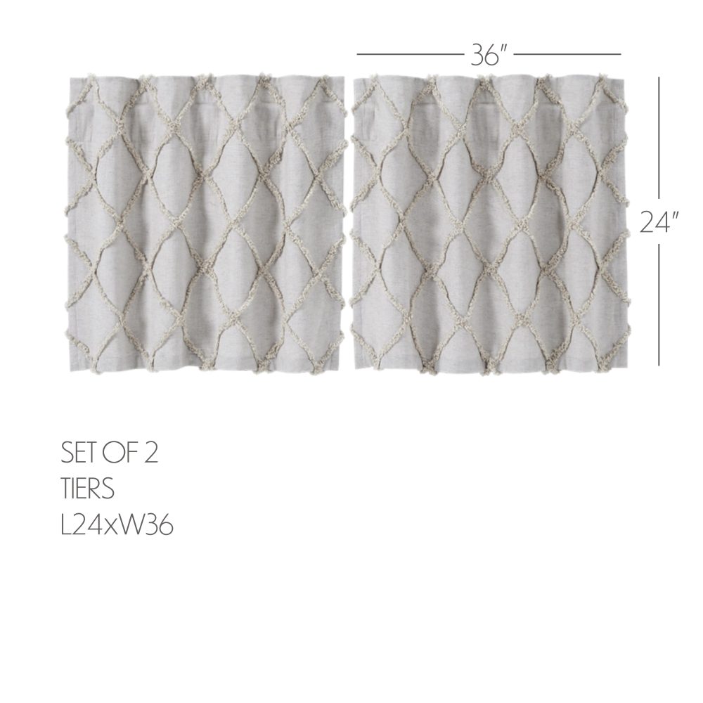 - FARMHOUSE TIER SET: Includes two 24 by 36 inch tier curtains with a 3.25 inch rod pocket and hidden hanging loops for easy installation. Tier or cafe curtains are a great way to add privacy while still allowing unfiltered sunlight to come through from above.