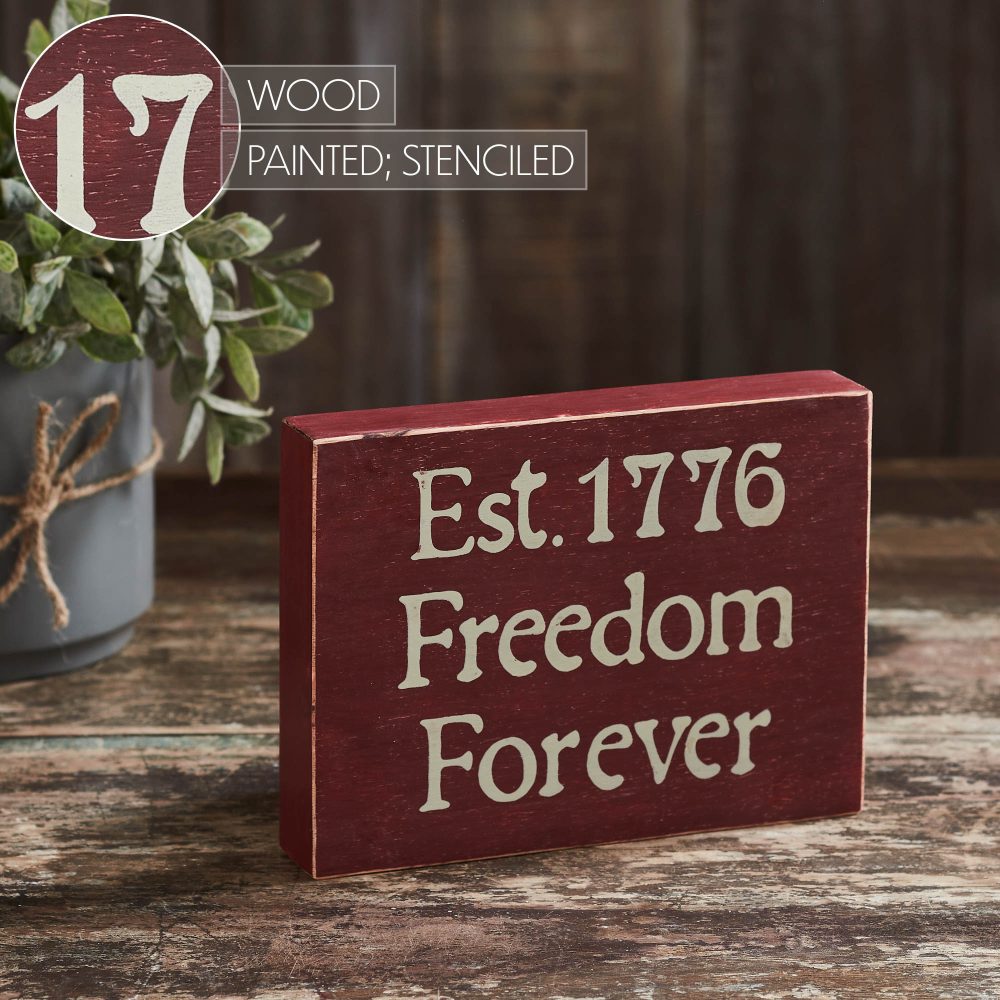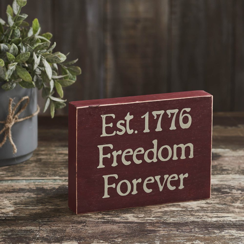 - Freedom Forever Wooden Sign: Elevate your Independence Day decor with the VHC Brands Freedom Forever Wooden Sign, a patriotic statement piece measuring 6x8x1.5 inches. Crafted from high-quality tropical wood, this sign encapsulates the enduring spirit of freedom.