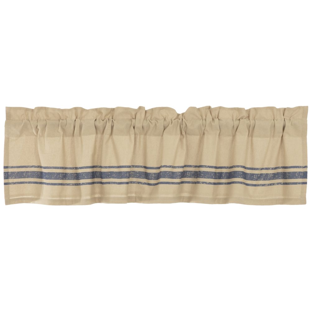 The Fresh Picked Valance brings a warm, neutral touch to your windows with a big dose of farmhouse charm and casual style. Basic beige chambray keeps the look rustic and simple while distressed blue grain sack stripes add the perfect muted dash of blue. A rod pocket as well as fabric loops on the back offer different hanging options and looks for your home. If you love this look, add other pieces from the Fresh Picked Collection for a layered, curated look.
