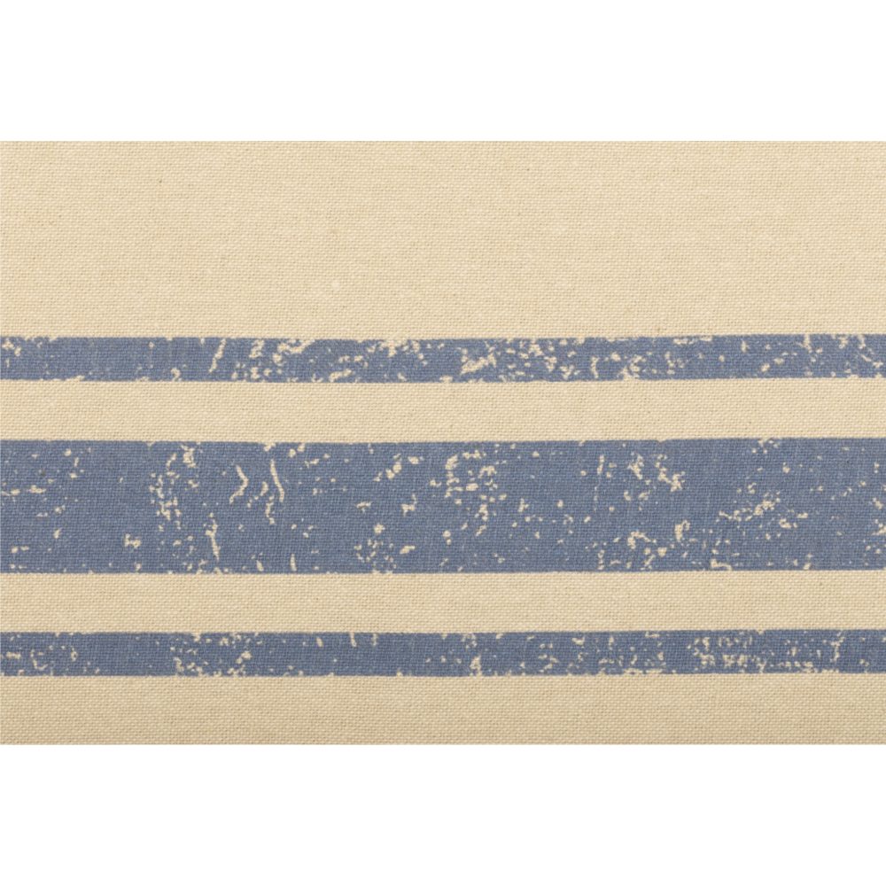 - Beige Chambray with distressed blue grain sack stripe. 3.25 rod pocket with fabric loops for hanging options.