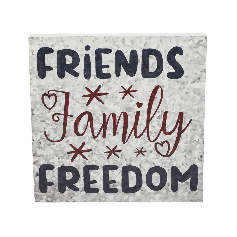 Friends Family Freedom On Galvanized Metal Print MDF Block Sign 10x10x1