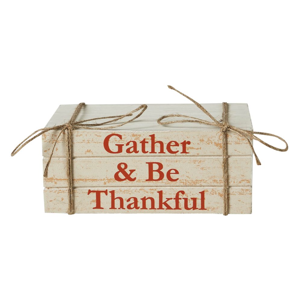 Gather & Be Thankful Faux Book Stack Farmhouse Rustic Decorative Home Accent for Fall & Thanksgiving Tabletop Shelf Decor 2.5x6x4 Inches