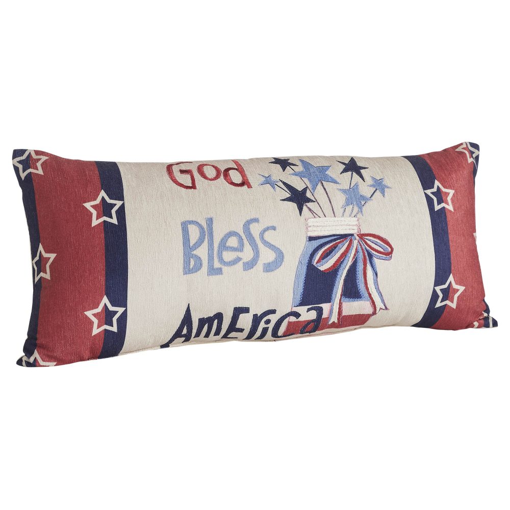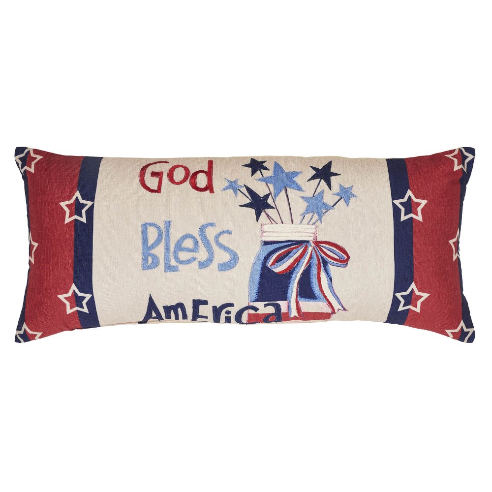 Introduce a touch of Americana charm to your living space with the VHC Brands Patriotic GBA Mason Jar Stars Pillow. Measuring 12x28, this rectangular cotton pillow effortlessly combines the rustic appeal of Mason jars and stars proclaiming "God Bless America" with the timeless beauty of the Stars and Stripes. The digital print, combined with meticulous embroidery, brings to life a patriotic tableau that enhances your bedroom, entryway, or living room with a distinctive touch of Independence Day decor. Crafted with precision and attention to detail, the VHC Brands Patriotic GBA Mason Jar Stars Pillow is designed for both style and comfort. The natural cotton fabric offers a soft and inviting texture, making it a delightful addition to your home. The combination of the rectangle shape and carefully selected color palette seamlessly integrates this pillow into any country-inspired or Americana-themed decor. Elevate your space with this patriotic accent that exudes warmth and celebrates the spirit of Independence Day. Embrace the spirit of country living and patriotic pride with the VHC Brands Patriotic GBA Mason Jar Stars Pillow. Its 12x28 size and rectangular shape make it an ideal addition to your bedroom, entryway, or living room. The Stars and Stripes motif, paired with the charming Mason jars and stars, creates a visually appealing design. The digital print and embroidered details add depth and character to this cotton pillow, making it a standout piece for your Independence Day decor.