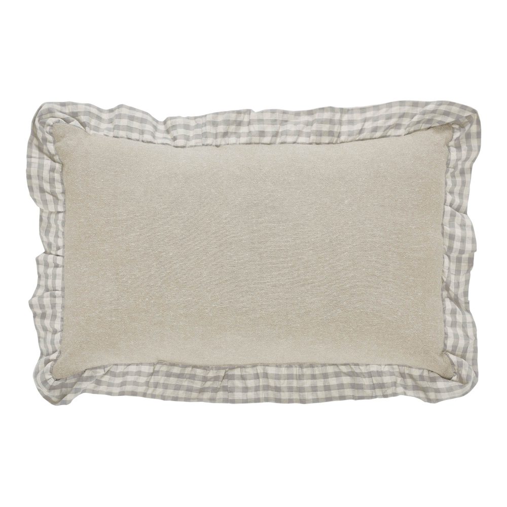 Imagine crisp autumn air drifting through an open window as golden sunlight spills across your cozy living space. Our 22x14 Give Thanks Fall Throw Pillows instantly infuse your home with the heartwarming embrace of classic country charm and the bountiful spirit of the season. Each pillow invites a sense of peaceful gathering, a gentle nod to gratitude that feels right at home amidst heirloom quilts and crackling fires. Crafted from a sumptuously soft, natural chambray, these seasonal accent pillows offer an irresistible tactile allure, inviting you to sink into comfort. The phrase "Give Thanks" is tenderly appliqued in a natural, handwritten font at the center, evoking a sense of sincere, rustic elegance. Framed by a charming grey and creme buffalo check ruffle, each pillow adds a layer of delightful cottage core detail, perfect for curating a haven of autumnal beauty and heartfelt thankfulness.