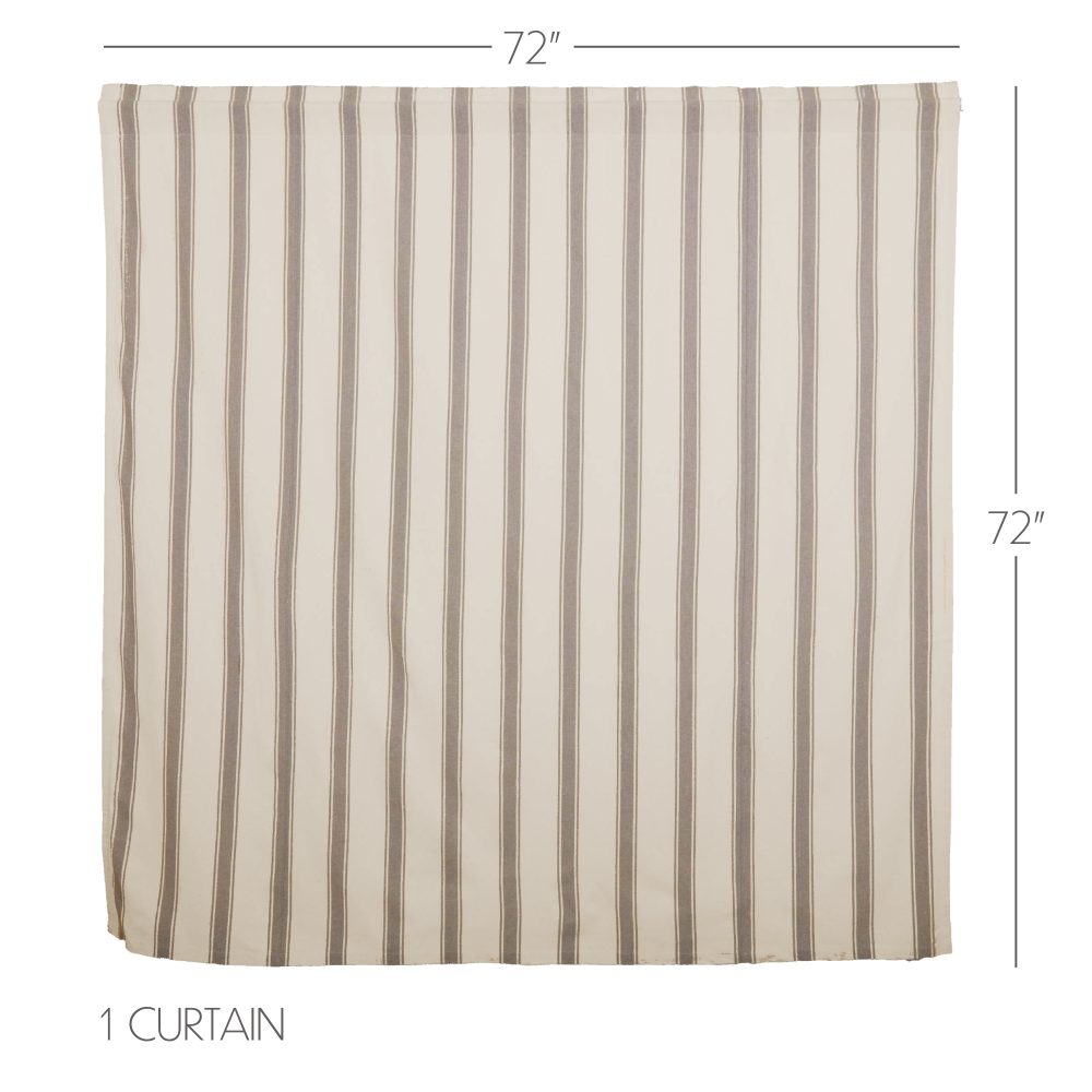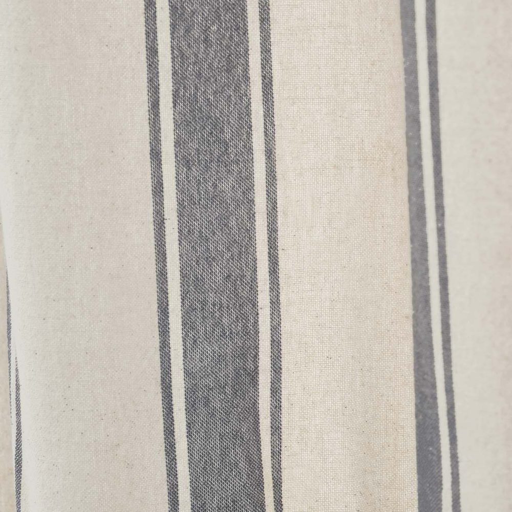 The Grace Grain Sack Stripe Shower Curtain transforms your bath with classic country charm. Features a classic grain sack fabric with a creme base and thick nickel grey striping. Measures 72 by 72 inches to fit standard sized showers and baths. Easily hang this classic country bath curtain with shower hooks of your choosing (not included) using the button holes attached. A 3" rod pocket is also available as an alternative hanging method.