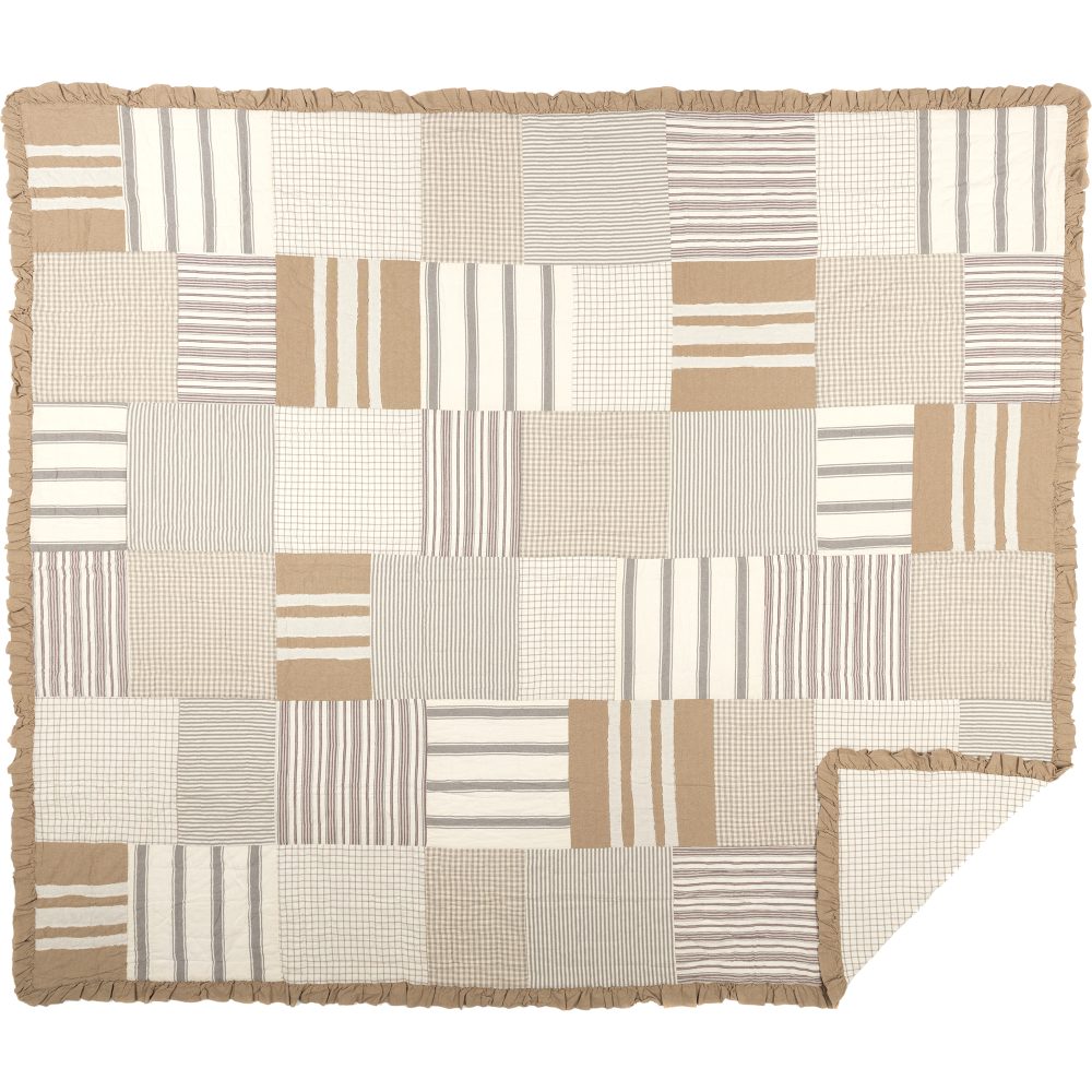 - HAND-QUILTED PATCHWORK: Large, even blocks in simple patterns are stitched together carefully with Stitch in the Ditch and Echo quilting techniques for superior style and durability. Ruffled Edging in natural tan adds soft, country chic style to this modern farmhouse quilt.