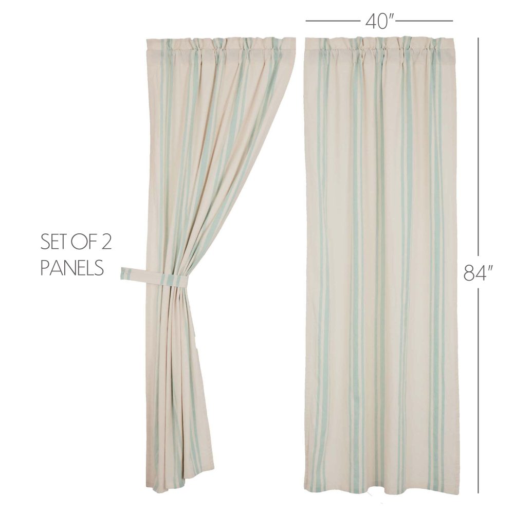 Classic and timeless, our Grain Sack Aqua Panel Set 84x40 helps bring your cozy sea-inspired vision to life. Perfect for any season, these textured cotton chambray curtains feature a creme base with aqua grain sack stripes. This refreshing window treatment coordinates well with our Avani Sea Glass bedding collection for a complete look in your vintage or boho farmhouse-style bedroom. Give your curtains a simple refresh and let in natural light with our matching cloth tie-backs included.