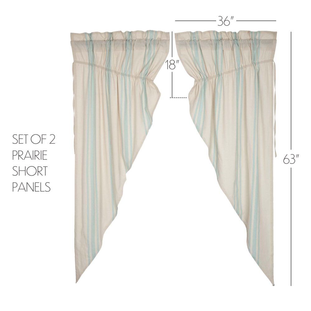 Classic and timeless, our Grain Sack Aqua Prairie Short Panel Set 63x36x18 helps bring your cozy sea-inspired vision to life. Perfect for any season, these textured cotton chambray curtains feature a creme base with aqua grain sack stripes. This refreshing window treatment coordinates well with our Avani Sea Glass bedding collection for a complete look in your vintage or boho farmhouse-style bedroom. Give your curtains a simple refresh and let in natural light with the drawstring ties attached.