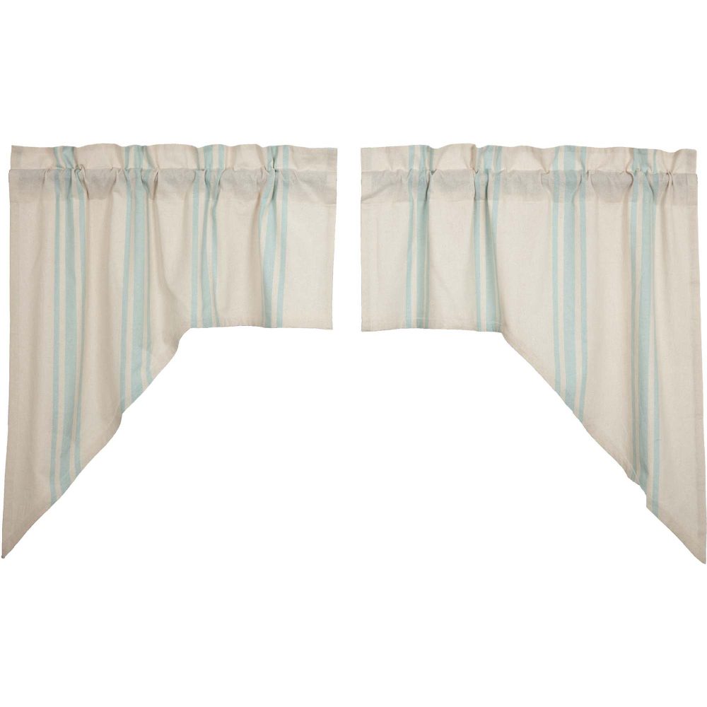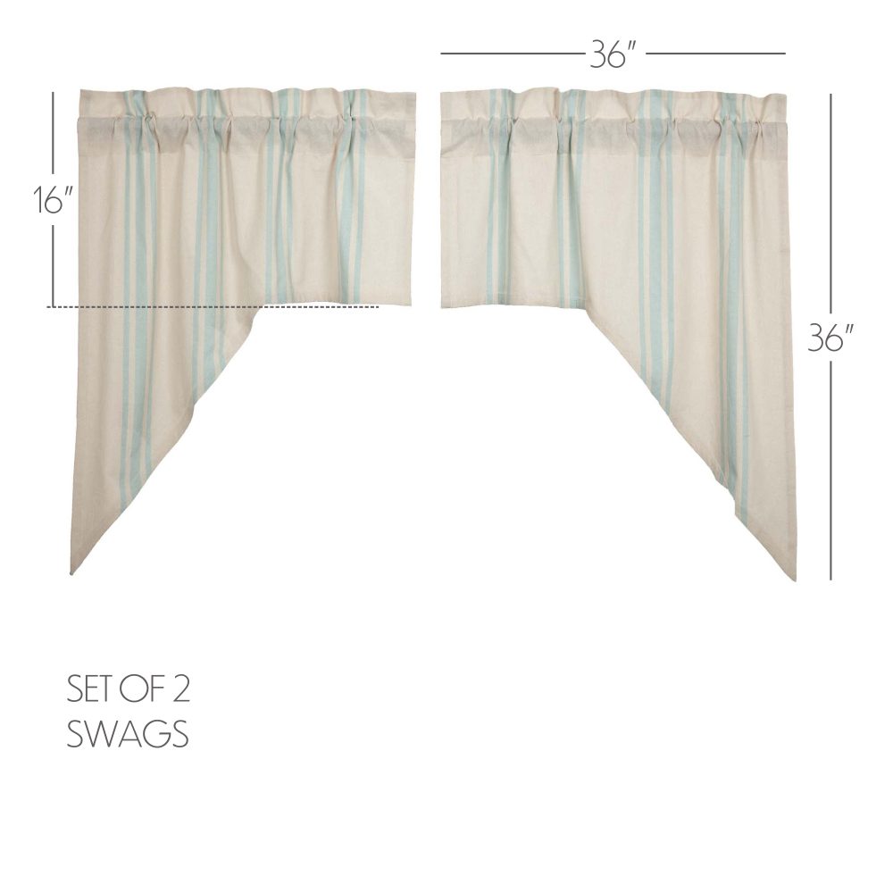 Classic and timeless, our Grain Sack Aqua Swag Set 36x36x16 helps bring your cozy sea-inspired vision to life. Perfect for any season, these textured cotton chambray curtains feature a creme base with aqua grain sack stripes. This refreshing window treatment coordinates well with our Avani Sea Glass bedding collection for a complete look in your vintage or boho farmhouse-style bedroom.